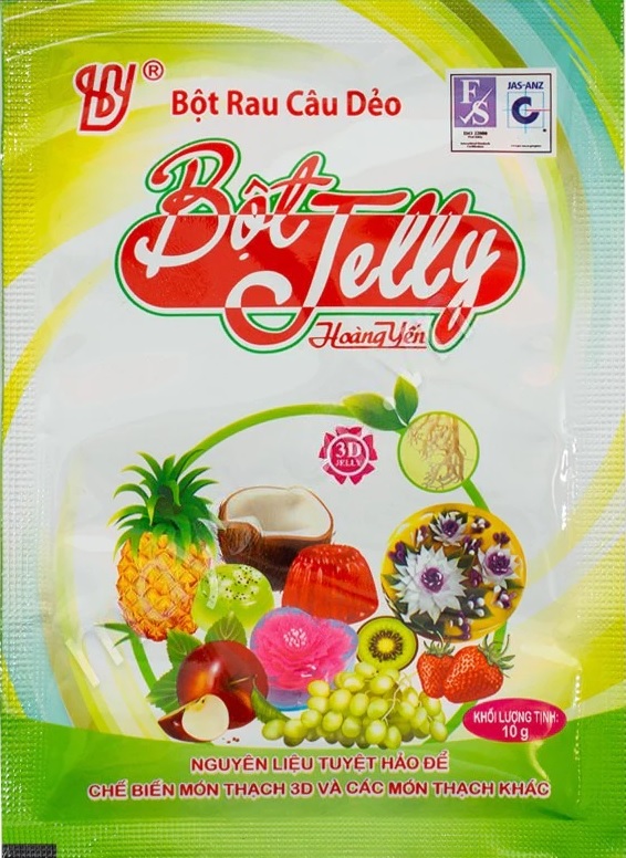 Bột rau câu dẻo ( Jelly) thương hiệu Hoàng Yến Hải Phòng 100% nguồn gốc tự nhiên có độ trong suốt , kết cấu vững chắc , dẻo và tinh kiết . Được ưa chuộng