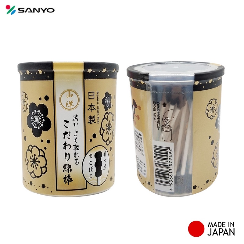 ✨Hộp 150 tăm bông ngoáy tai than hoạt tính Sanyo, 100% bông gòn tự nhiên mềm mại không gây đau rát khi sử dụng - nội địa Nhật Bản