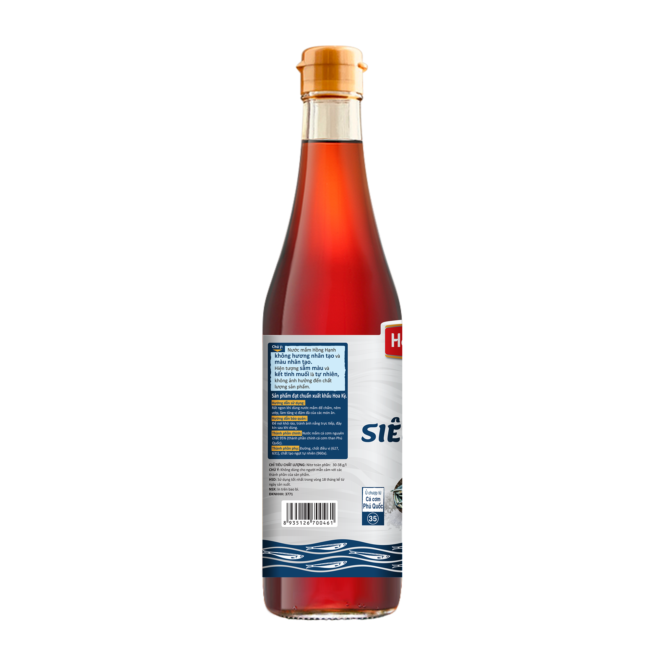 - Được ủ chượp hoàn toàn từ cá cơm than Phú Quốc và muối tinh Bà Rịa Vũng Tàu, nước mắm Siêu Hạng gói trọn dưỡng chất từ tự nhiên để mỗi món ăn không chỉ thơm ngon khó cưỡng mà còn an toàn cho sức khỏe. ️️II. THÀNH PHẦN: Nguồn nguyên liệu ủ chượp 100% tự nhiên từ cá cơm than tươi Phú Quốc và muối tinh Bà Rịa Vũng Tàu - Cá cơm than: Chỉ những mẻ cá cơm than tươi ngon nhất mới được Hồng Hạnh lựa chọn để ủ chượp nước mắm. Đây là loài cá đặc biệt chỉ có riêng ở vùng biển Phú Quốc. Cá cơm than ở đảo Ngọc nhiều thịt, ít ruột, khi ủ chượp sẽ cho ra loại nước mắm có độ đạm tự nhiên cao nhất, hương vị đậm đà thơm ngon đặc trưng không nơi nào sánh được.