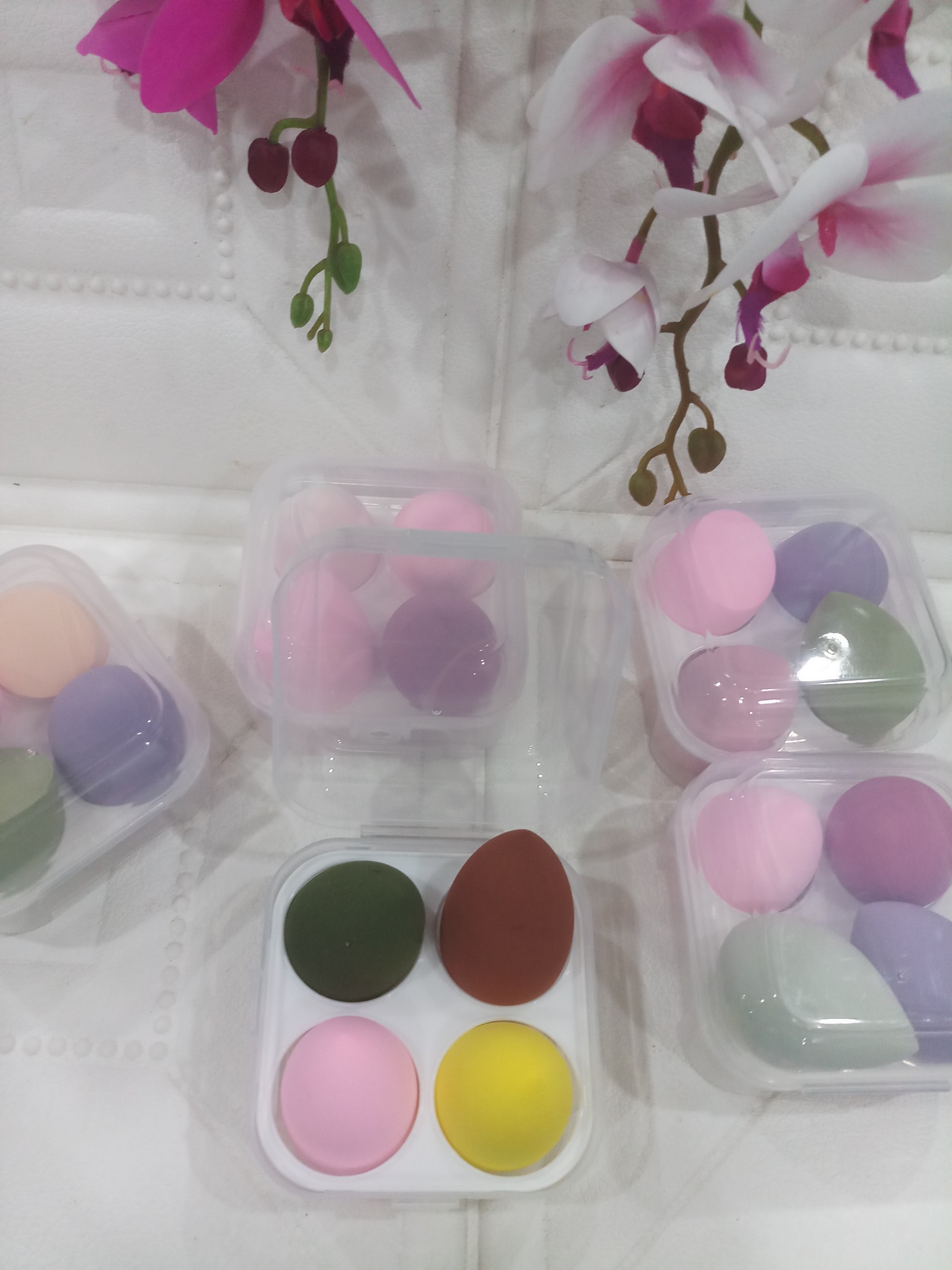 Hộp 4 mút trang điểm - Mút tán kem nền có hộp nhựa đựng tiện dụng ︎ 4 set màu : HỒNG , XANH , TÍM , VÀNG , 4 MÀU Vừa tiện ,
