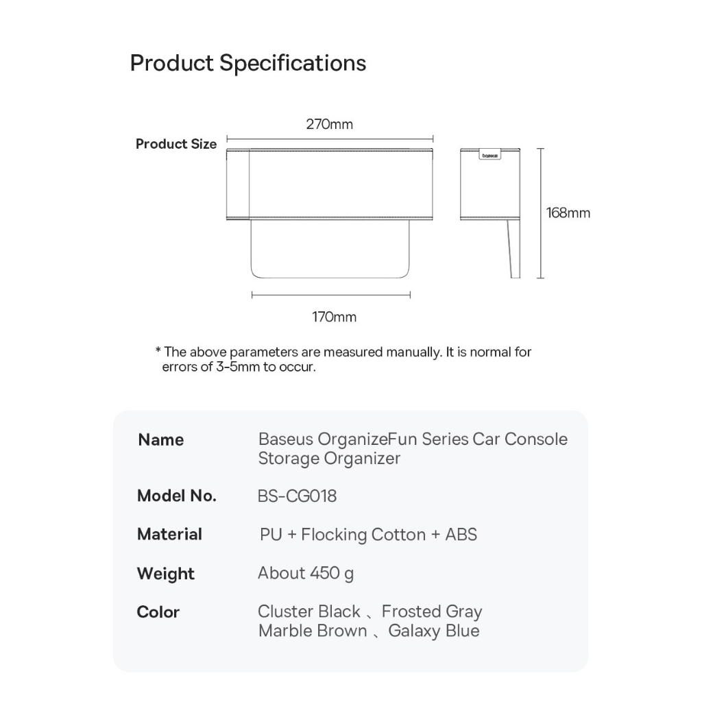 - Hộc Đựng Đồ Tiện Ích Trên Xe Ôtô Baseus OrganizeFun Series Car Console Storage Organizer là một sản phẩm tiện ích từ dòng sản phẩm OrganizeFun Series của thương hiệu Baseus, được thiết kế để cung cấp không gian lưu trữ tiện lợi và sắp xếp trên bề mặt console của xe ô tô.