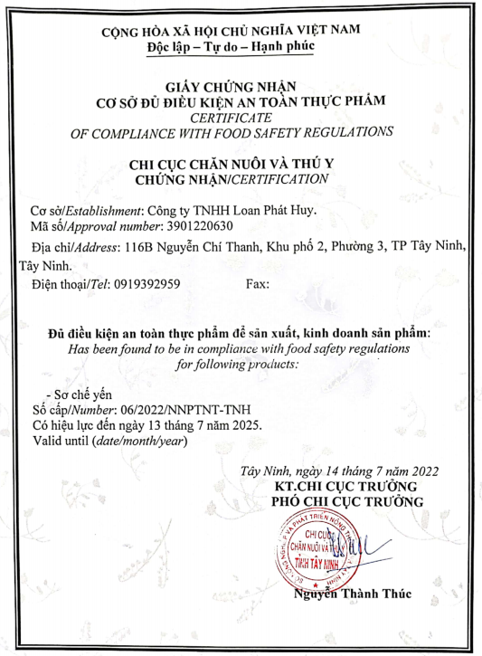 Yến sào Yến Loan là Thương hiệu Yến sào đầu tiên và hàng đầu tại Tây Ninh.