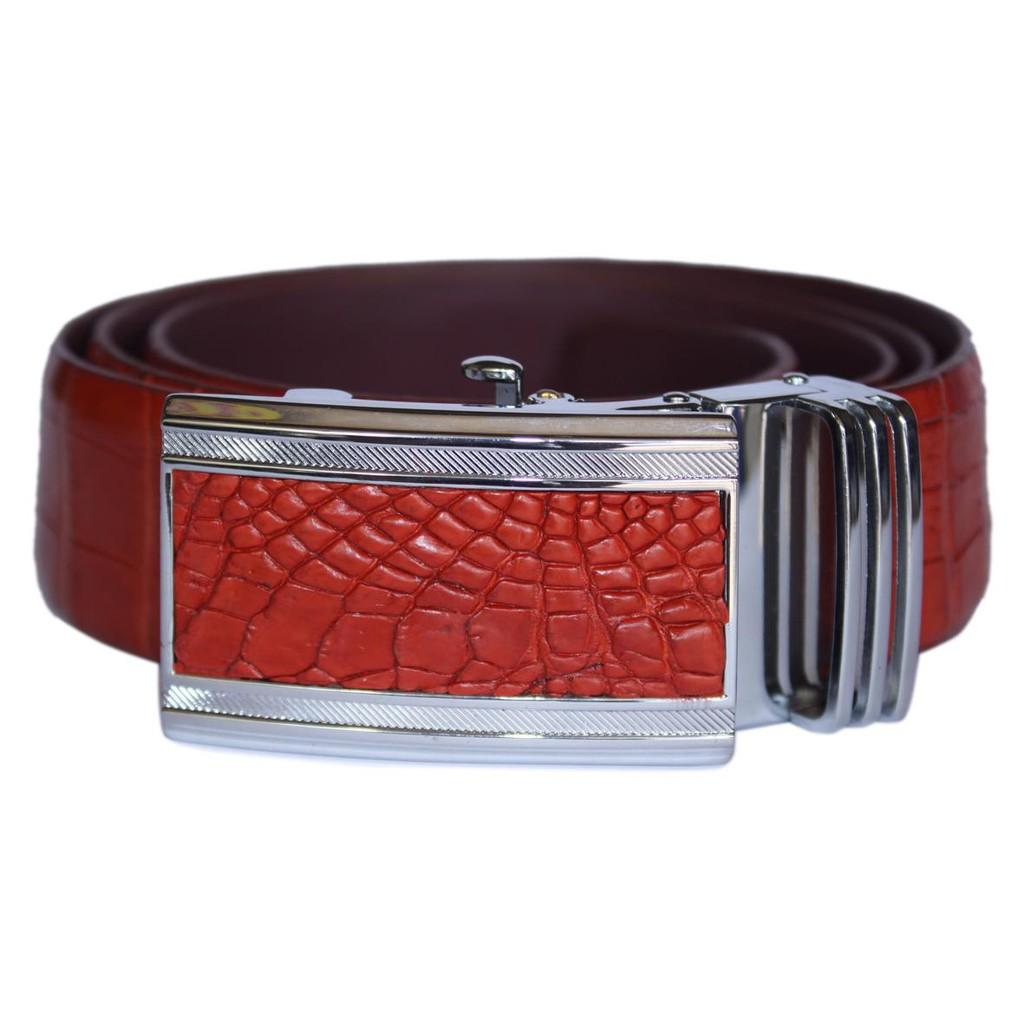 Dây nịt da cá sấu màu nâu đỏ da bụng