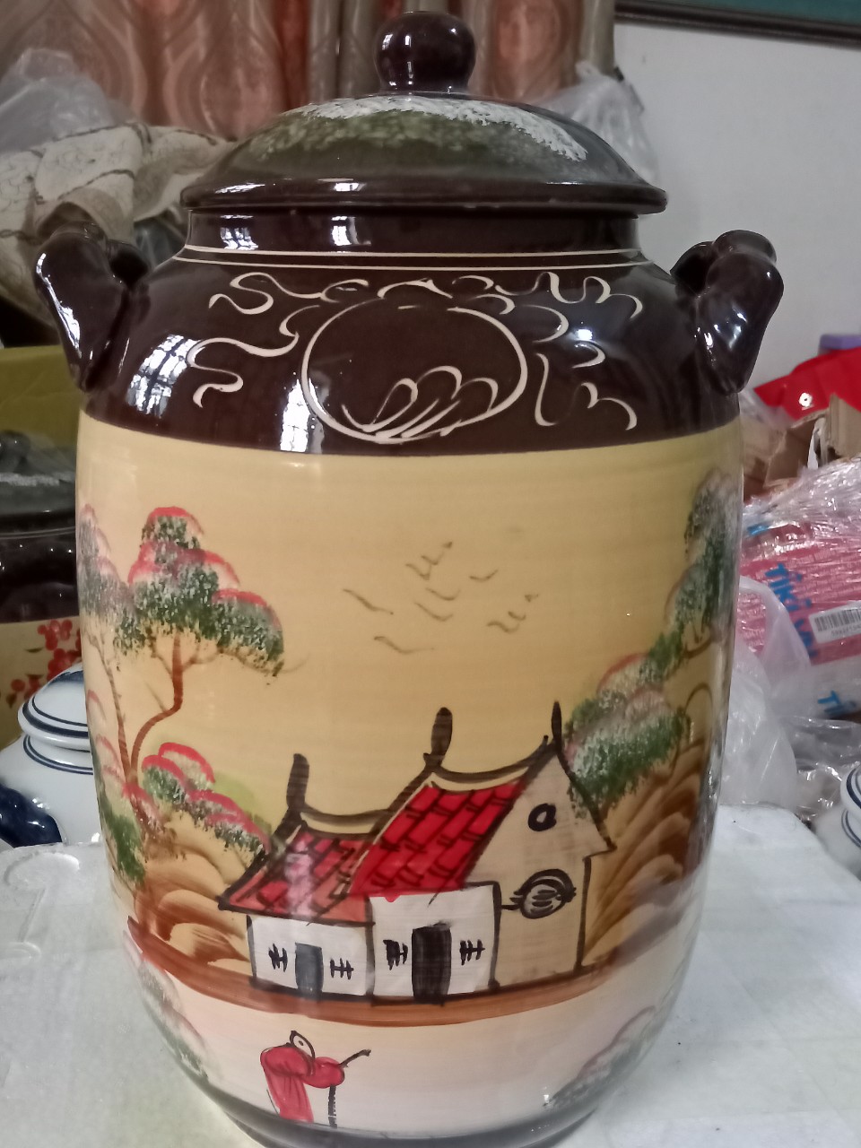 ✨Hũ đựng rượu gạo gốm sứ Bát Tràng vẽ phong cảnh loại 20L