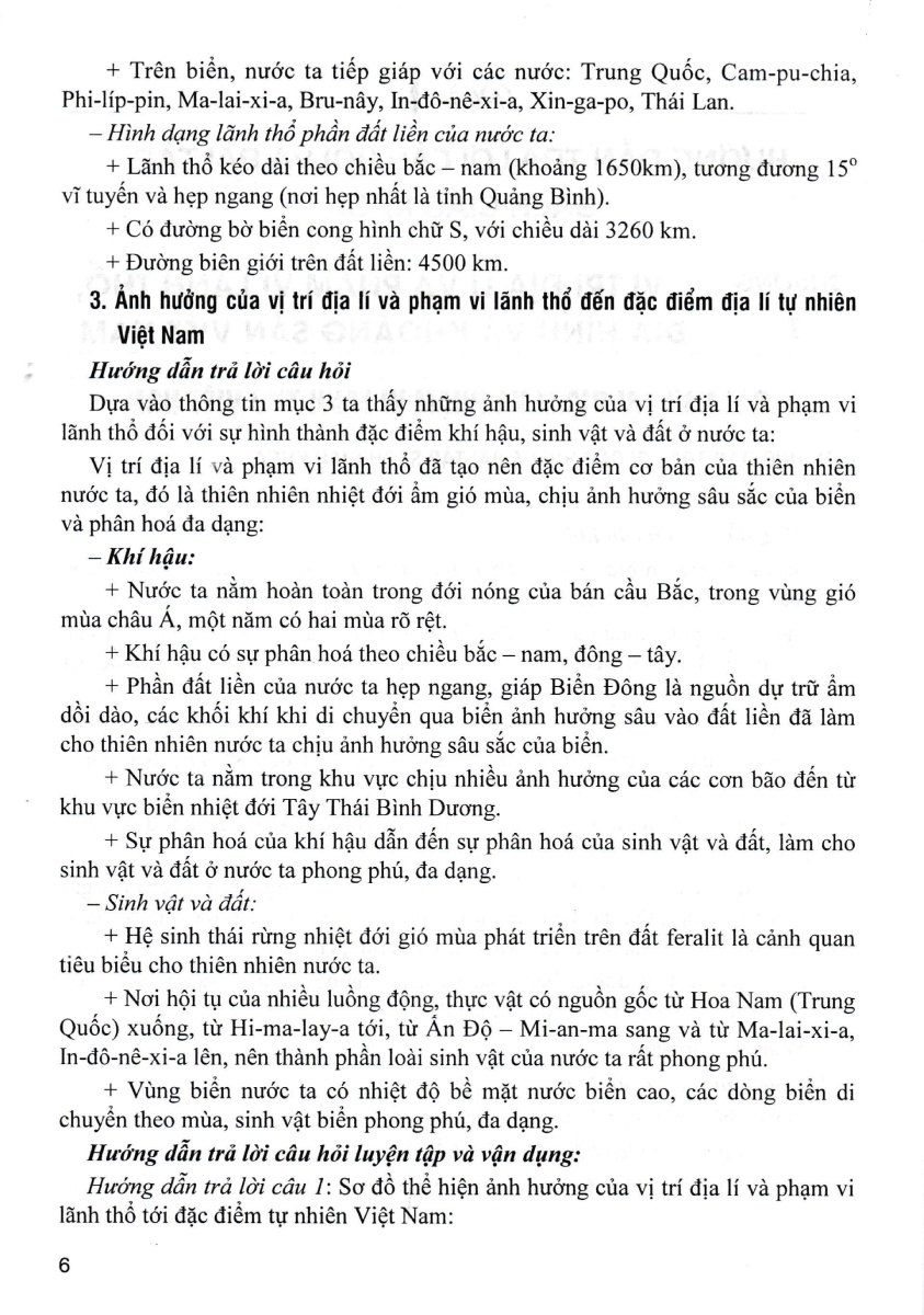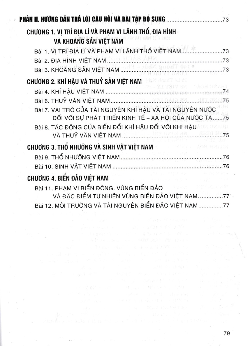 Trong phần này, hướng dẫn trả lời các câu hỏi và bài tập giữa bài học, phần luyện tập và vận dụng trong sách giáo khoa. Bên cạnh đó tác giả còn đưa ra các câu hỏi luyện tập bổ sung để giúp các em học sinh tự đánh giá, kiểm tra và rèn luyện các kỹ năng Địa lí nhằm nâng cao kiến thức trong học tập.