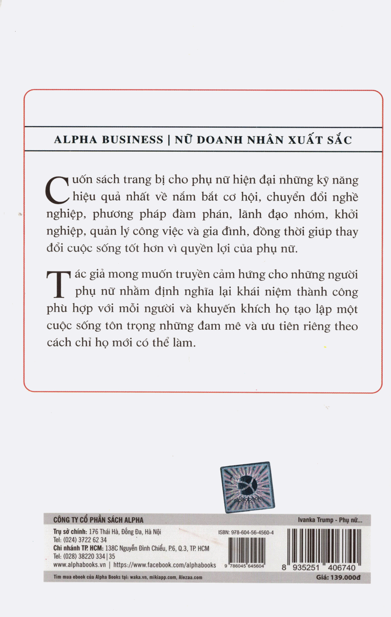 ✨Ivanka Trump - Phụ Nữ Hiện Đại Viết Lại Luật Thành Công: Cuốn Sách Trang Bị Cho Phụ Nữ Hiện Đại Những Kỹ Năng Hiệu Quả Nhất Về Nắm Bắt Cơ Hội, Chuyển Đổi Nghề Nghiệp, Phương Pháp Đàm Phán, Lãnh Đạo Nhóm, Khởi Nghiệp, Quản Lý Công Việc Và Gia Đình ( tặng k