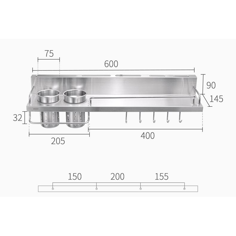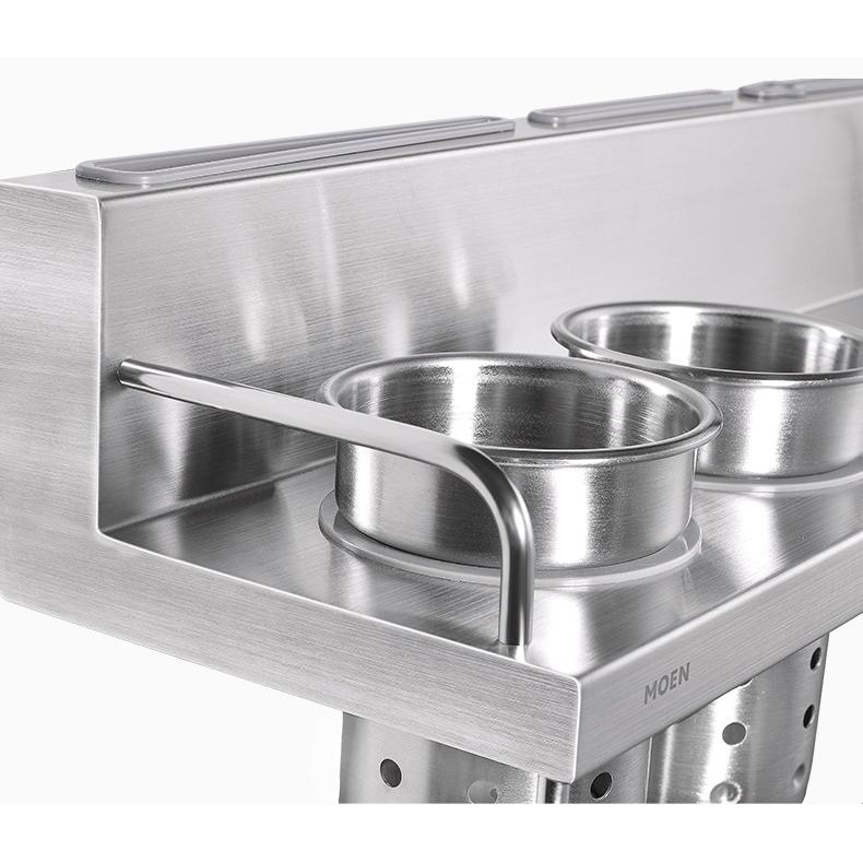 Mua tại TiktokKỆ GIA VỊ ĐA NĂNG KÈM 2 ỐNG ĐŨA, MÓC TREO MOEN - KAC0104SL Chất liệu: Inox 304 Sản phẩm của MOEN - Thương hiệu vòi sen số một tại Mỹ Bao gồm kệ gia vị, 2 ống đũa, khe đựng dao kéo, bộ 10 móc treo Lớp mạ nhám chống bẩn, chống vân tay Góc cạnh bo tròn tránh nguy hiểm Lớp nhựa cao su bảo vệ lưỡi dao, kéo Ống đũa có nắp và lỗ thoát nước tránh ẩm mốc