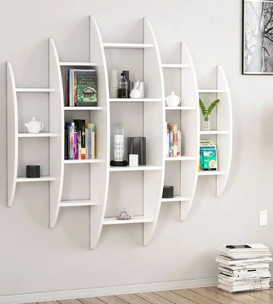Một sự tổng hòa, cân đối được thể hiện rõ trong chiếc kệ gỗ trang trí treo tường này. Chính bản thân chiếc kệ đã biến không gian xung quanh trở nên đẹp đẽ.