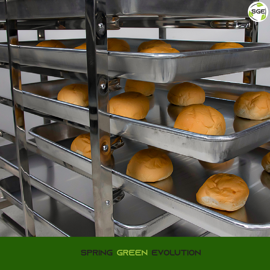 - Bánh xe cao su, khóa được 2 bánh KỆ KHAY BÁNH/XE ĐẨY KHAY BÁNH/KỆ ĐỂ KHAY Giá để khay bánh, kệ để bánh hay kệ inox để khay bánh (Bakery Trolley Racks) sản xuất chuyên dụng cho ngành thực phẩm. Kệ làm từ chất liệu inox 201 chắc chắn, nhẹ, dễ lắp đặt và dễ di chuyển. Kệ khay bánh dùng để đặt khay bánh sau khi nướng hoặc sau khi chuẩn bị bột và dùng để chuyển bánh từ nhà bếp đến điểm đón tiếp của hội thảo, khách sạn. Ngoài kệ inox. SGE còn có khay nướng bánh để phân phối đặc biệt! Khay nướng của chúng tôi có khả năng dẫn nhiệt tốt, bền, kết cấu dày dặn, không cong vênh. Nếu khách hàng quan tâm có thể tham khảo thêm. KÍCH THƯỚC THỰC TẾ KỆ KHAY BÁNH