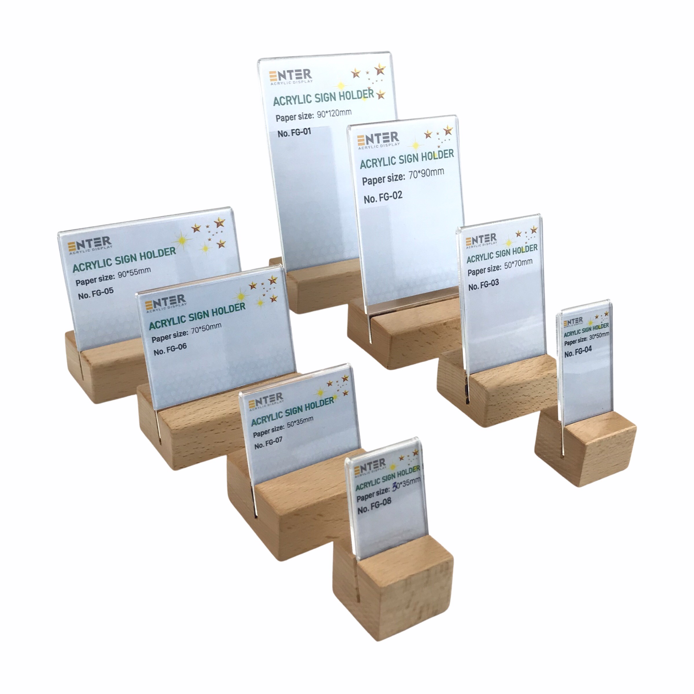 Kệ mica 1 mặt đế gỗ Enter để bàn là sản phẩm làm từ Mica Đài Loan, có công dụng hiển thị giá cả sản phẩm tại các nhà hàng, khách sạn... sản phẩm này còn được dùng như một standee để bàn quảng cáo sản phẩm một cách ấn tượng nhất.
