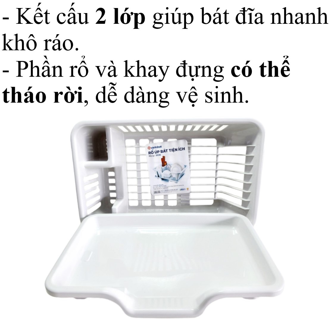 Rổ úp chén bát nhựa cao cấp có khay thoát nước