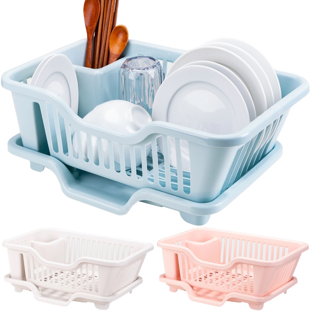 Bộ khay rổ úp chén bát nhựa 45x28x17cm - Khay hứng thoát nước, đựng dĩa, ống cắm dao đũa muỗng
