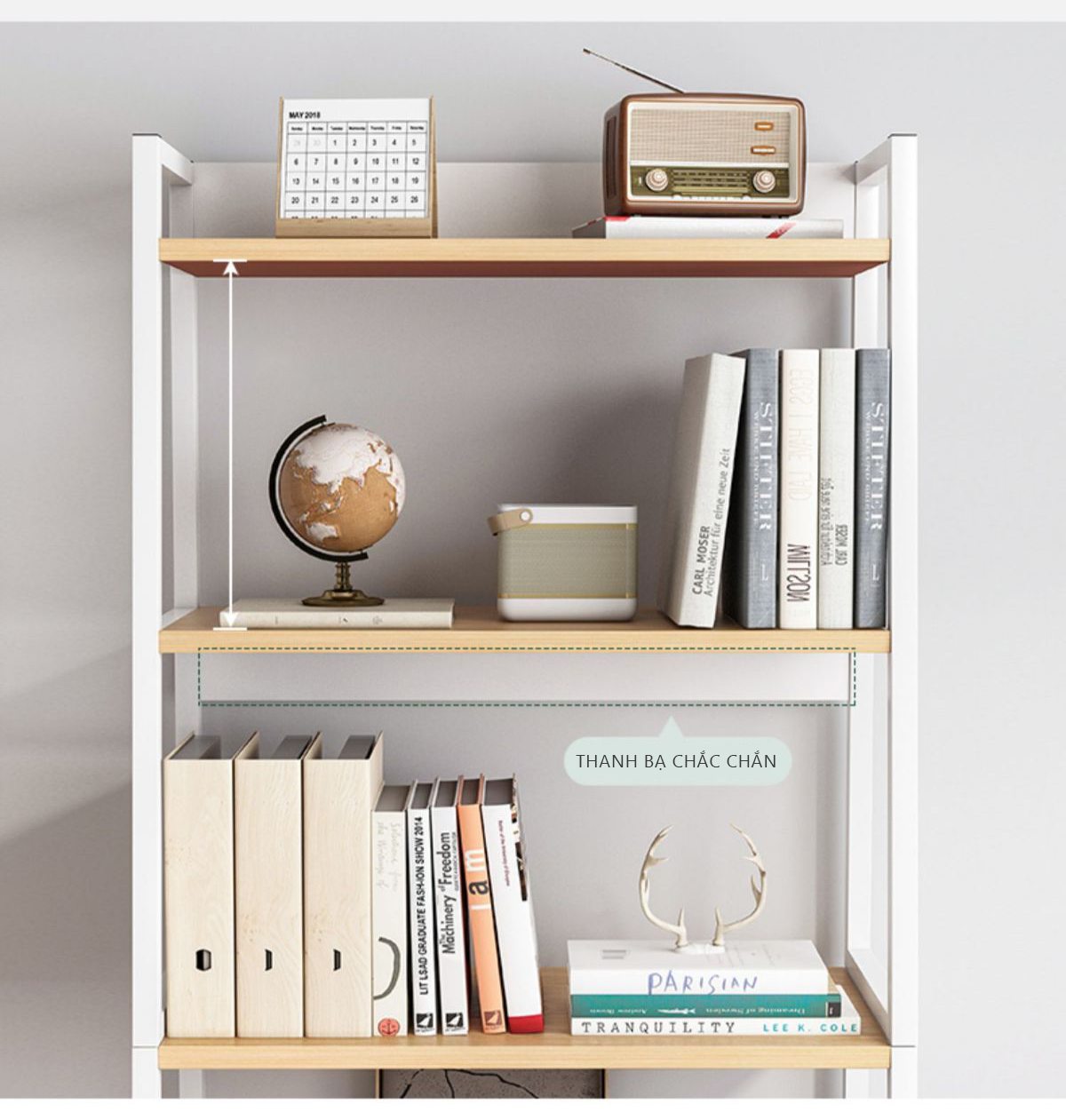 ️Kích thước: 3 ngăn: Cao x Rộng x Sâu = 80 x 60 x 24 cm 4 ngăn: Cao x Rộng x Sâu = 112 x 60 x 24 cm 5 ngăn: Cao x Rộng x Sâu = 136 x 60 x 24 cm ️Chất liệu: Gỗ Công Nghiệp (Gỗ MDF) nhập khẩu cao cấp chống xước, chống nước ️Màu sắc: Màu Trắng ️Bài trí: lắp đặt tùy vị trí mong muốn: cạnh bàn làm việc, bàn học, để đồ dùng, sách vở, tài liệu, đồ decor,