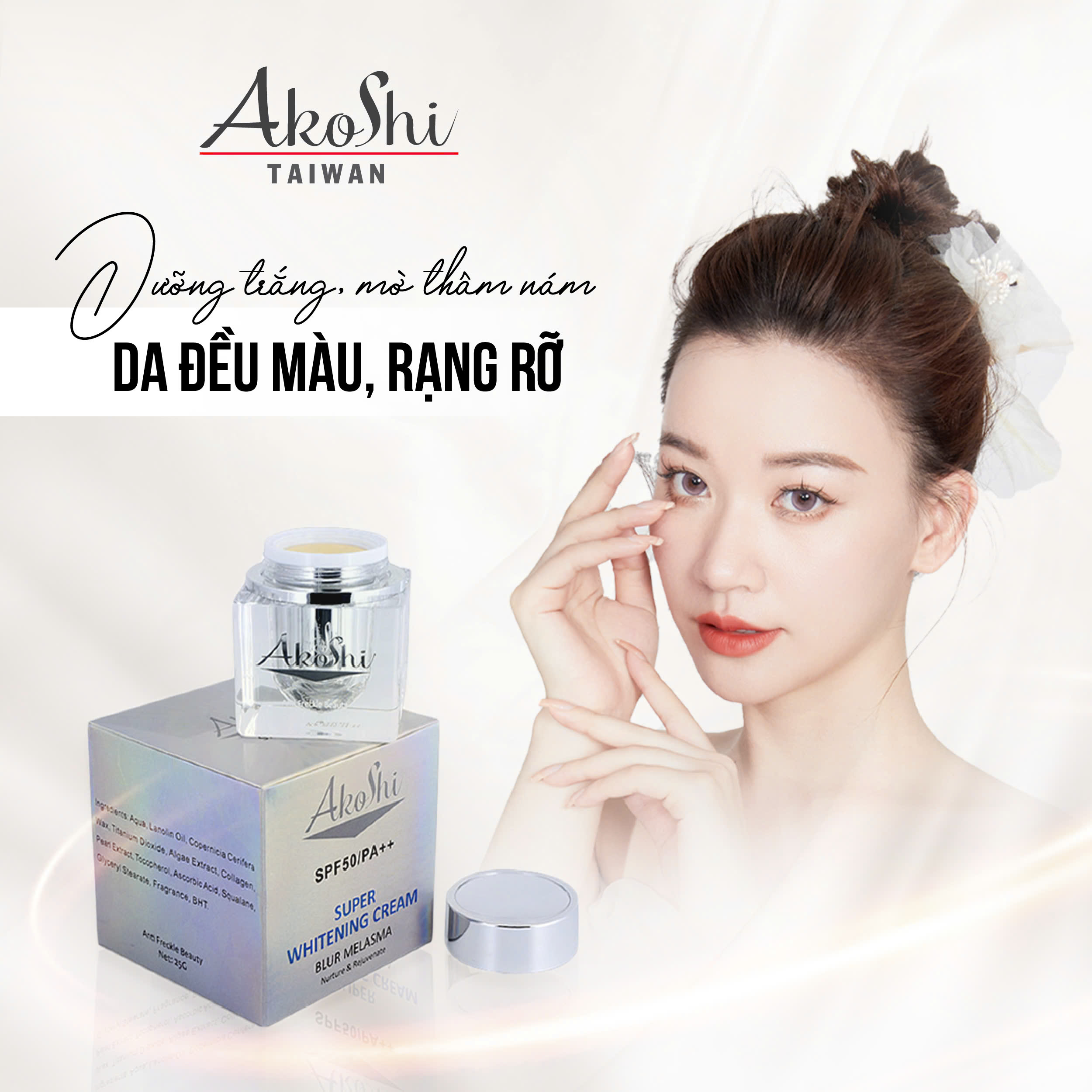 Mua tại TiktokAKOSHI WHITENING CREAM (25G) Kem Akoshi dưỡng trắng làm mờ nám, tàn nhang và ngăn ngừa lão hóa Công dụng:
