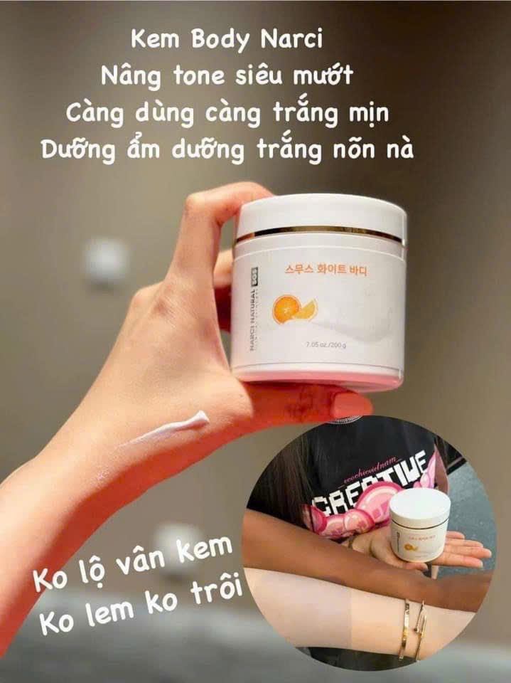 [Test&Review] Kem dưỡng trắng body Narci, Hàn Quốc (200g)