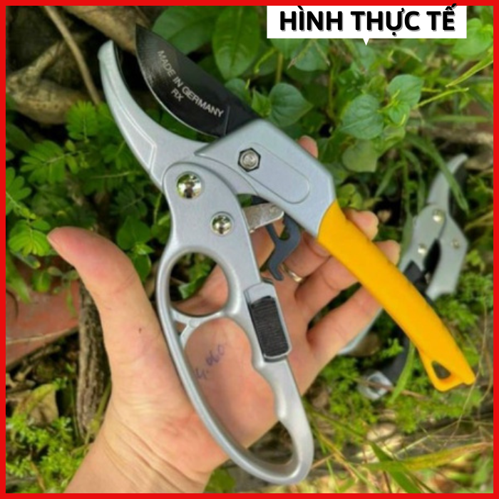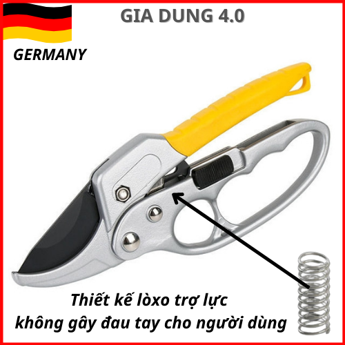 .Kéo cắt cành cộng lực chuyên dụng GERMANY dụng cụ làm vườn đa năng Thông tin sản phẩm;.Kéo cắt cành Đức -Kéo cộng lực cắt cây cảnh sản phẩm được ưa chuộng tại các nước phương tây -Kéo cộng lực cắt cây được làm từ thép SK5 không gỉ bền bỉ với thời gian luôn sáng bóng tạo cảm giác an toàn và sạch sẽ cho người dùng -Kéo được thiết kế dày dặn cứng cáp, cán kéo cong tạo nên một lực nhất định không làm đau tay người dùng