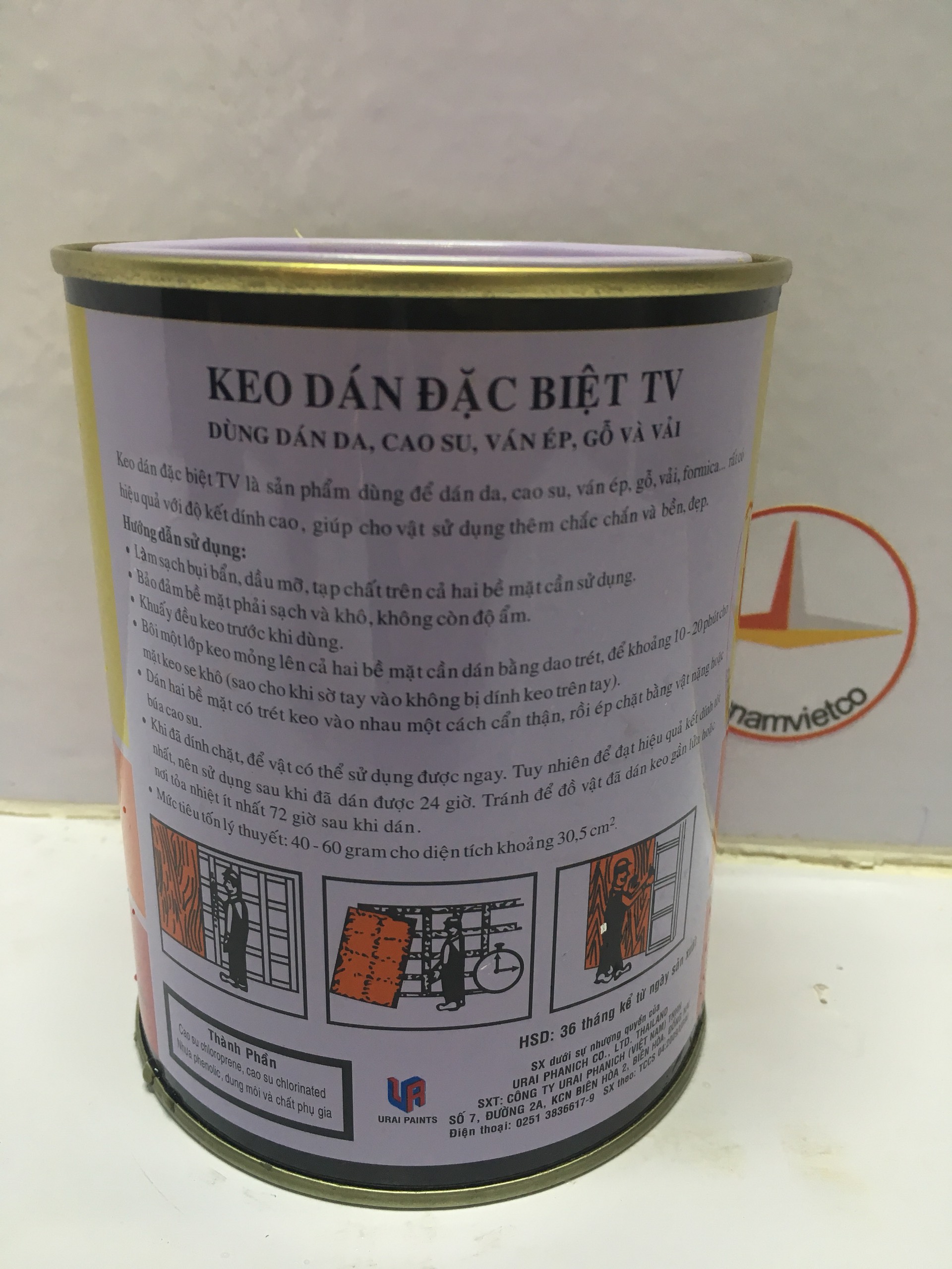 Keo dán đặc biệt TV dán giày, đồ da, đồ gỗ hiệu quả nhất 630ML Keo dán đặc biệt TV dán giày, đồ da, đồ gỗ hiệu quả nhất 630ML Giới thiệu DÙNG DÁN DA, CAO SU, VÁN ÉP, GỖ VÀ VẢI Keo dán đặc biệt TV là sản phẩm dùng để dán da, cao su, ván ép, gỗ, vải, rất có hiệu quả với độ kết dính cao, giúp cho vật sử dụng thêm chắc chắn và bền, đẹp. Thành phần: Cao su chloroprene, cao su chlorinated, nhựa phenolic, dung môi và chất phụ gia. Hướng dẫn sử dụng: