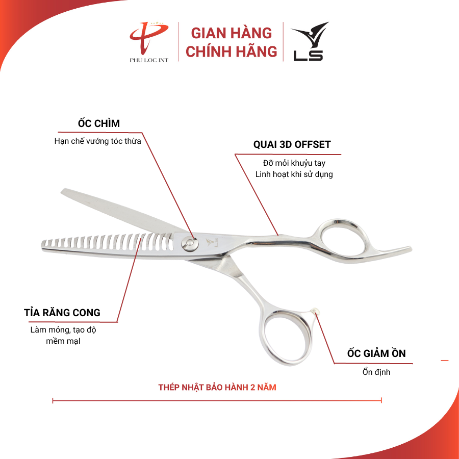 Với kiểu lưỡi răng lược và kích thước 6.0, sản phẩm rất phù hợp với kỹ thuật làm mỏng và tạo tầng lớp. Dòng kéo cắt tóc cao cấp VLS luôn đảm bảo chất lượng (cắt không chạy tóc). Sản phẩm được đánh bóng qua gần một trăm bước vì vậy rất bóng, mịn và sang trọng.