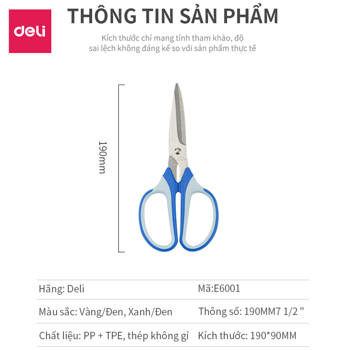 ✨Kéo Văn Phòng 190Mm Deli, Đen/Xanh - E6001