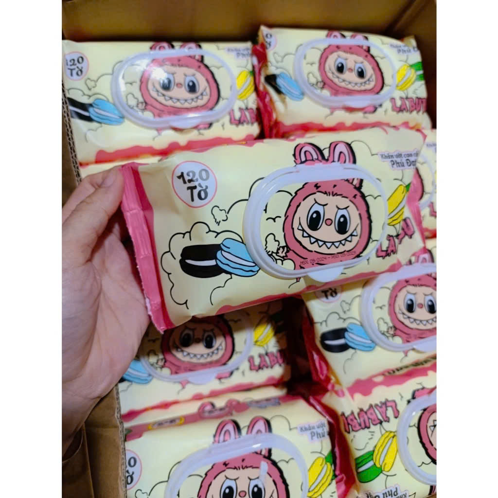 Mô tả sản phẩm: Sản xuất đã qua kiểm nghiệm và chứng nhận đạt tiêu chuẩn An toàn Sức khỏe của Cục Tiêu chuẩn Đo lường Chất lượng Việt Nam. Khăn ướt labubu Gồm 120 Tờ