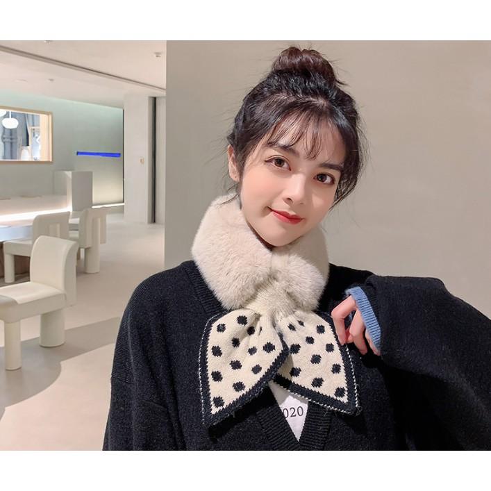 Khăn quàng cổ lông thỏ phối len thắt nơ ấm áp phong cách thời trang Dành Cho Nữ hot nhất 2020