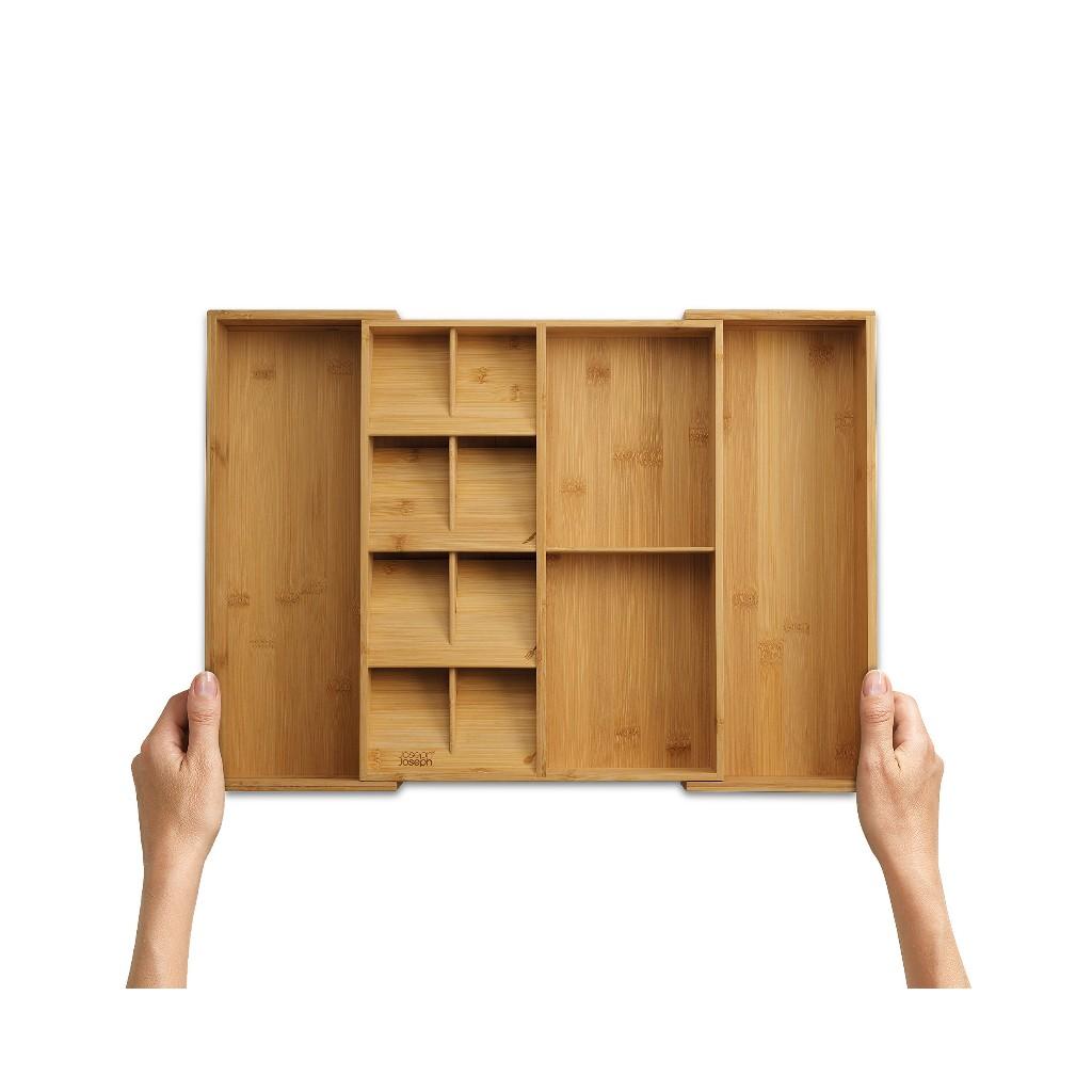 Bộ sắp xếp ngăn kéo đột phá này được thiết kế thông minh với năm ngăn chồng lên nhau để cất dao kéo, hai ngăn sâu để đựng đồ dùng nhỏ và các ngăn mở rộng để đựng đồ dùng lớn hơn. Được làm từ tre tự nhiên đẹp mắt và phù hợp với ngăn kéo có chiều cao tối thiểu là 8 cm (3,25 inch).