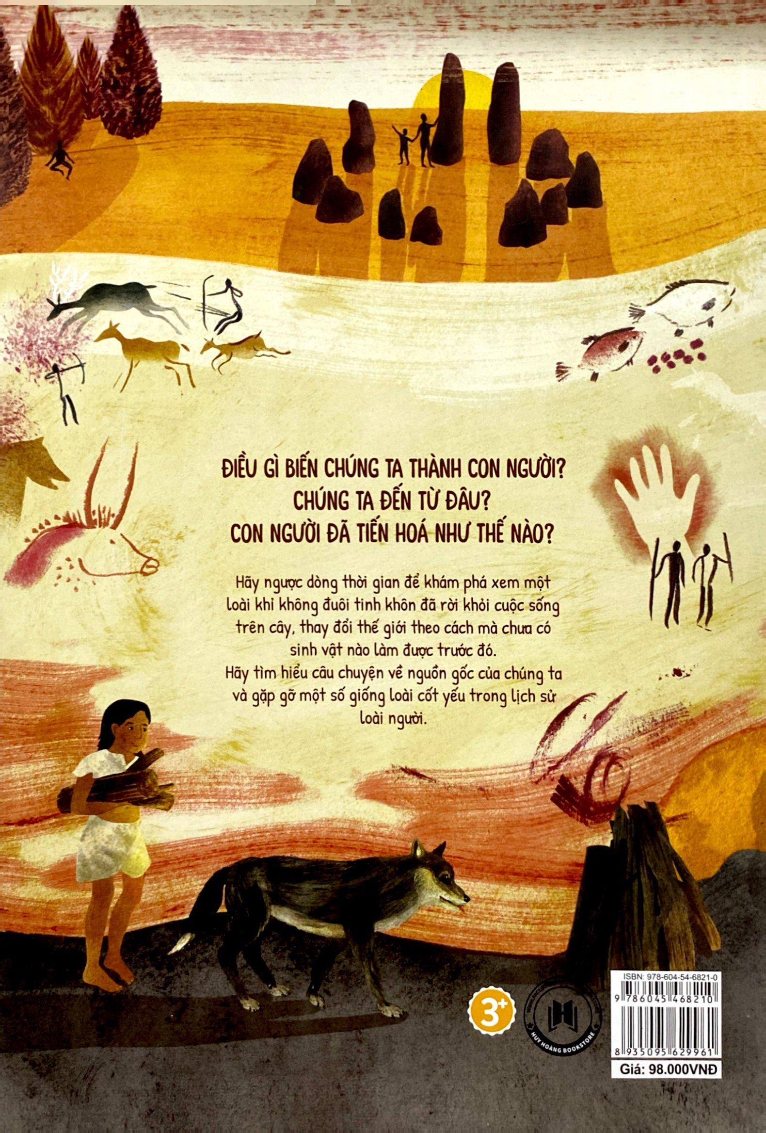 Các bé có biết điều gì biến chúng ta thành con người? Chúng ta đến từ đâu? Con người đã tiến hoá như thế nào? Hãy ngược dòng thời gian để khám phá xem một loài khỉ không đuôi tinh khôn đã rời khỏi cuộc sống trên cây, thay đổi thế giới theo cách mà chưa có sinh vật nào làm được trước nó. Hãy tìm hiểu câu chuyện về nguồn gốc của chúng ta và gặp gỡ một số giống loài cốt yếu trong lịch sử loài người. Nhà sách Huy Hoàng trân trọng giới thiệu cùng bạn đọc!