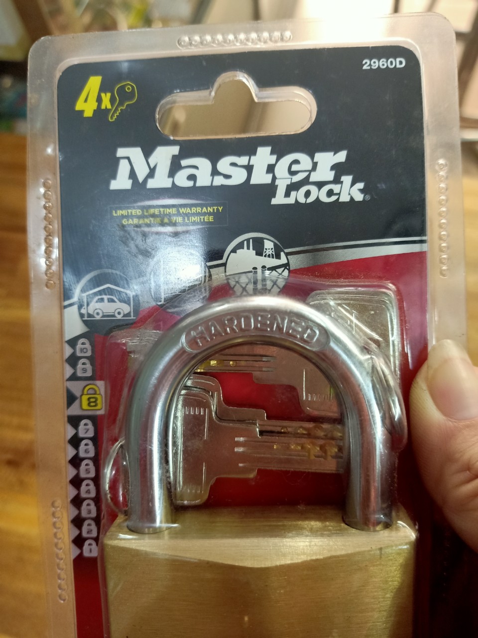 - Chât liệu : càng khóa bằng thép cứng, thân khóa bằng đồng solid tăng độ bền.