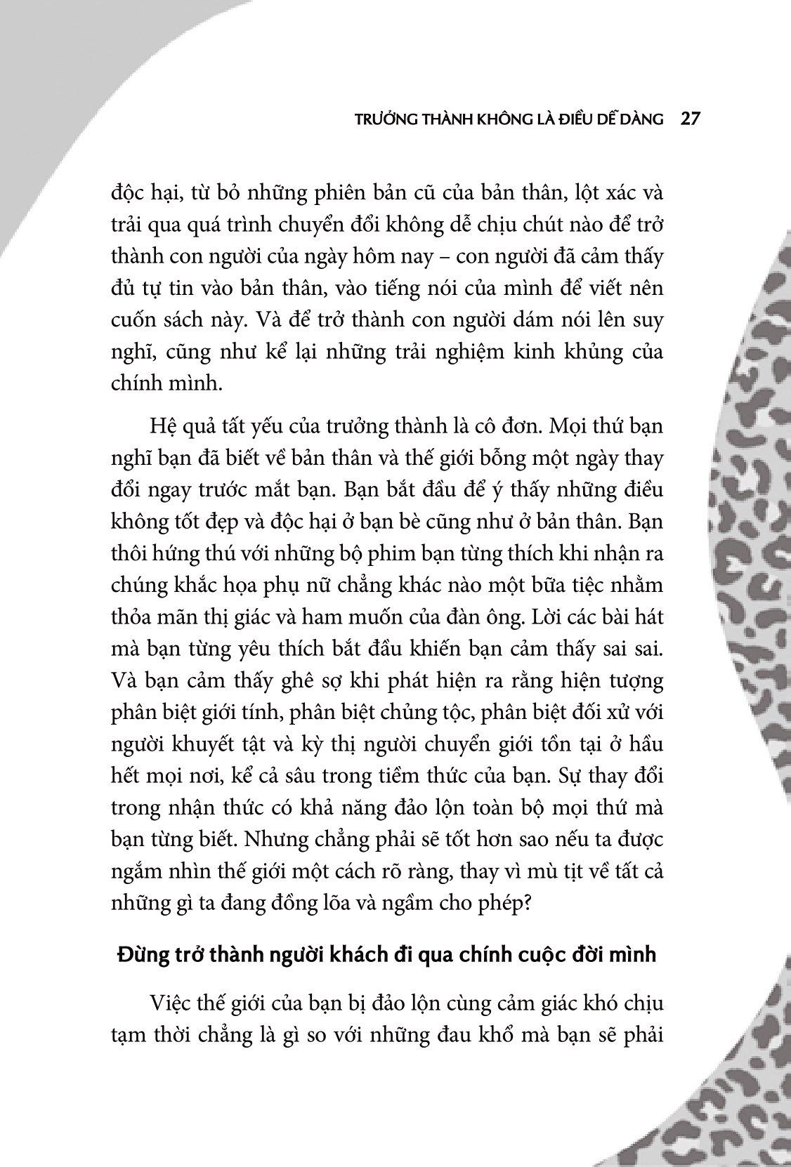Sẽ thật tuyệt nếu phụ nữ cảm thấy họ không cần dùng đến những phương pháp làm đẹp quá khắc nghiệt để cơ thể “đủ sức thu hút”, và có thể để mặt mộc đi làm mà không bị nhận xét rằng “trông mặt tối tối”. Nhưng người ta vẫn luôn trông đợi rằng phụ nữ thì phải xinh đẹp và đáng them muốn, và mức độ trông đợi sẽ khác nhau tùy thuộc vào vị trí mà người phụ nữ ấy đã nắm giữ trong hệ thống phân cấp độ hấp dẫn mà xã hội tạo ra. Chúng ta không thể ép người khác cảm thấy xấu hổ vì đã sử dụng một vài công cụ để làm đẹp, nhất là khi họ chỉ muốn cuộc sống của m.ình dễ dàng hơn và nhận được sự tôn trọng cơ bản dành cho con người, cho dù đó là cọ trang điểm hay dao cạo. Tại sao bạn lại muốn họ phải chịu khổ sở thêm nữa dưới cái lốt “tinh thần nữ quyền ưu việt”, khi họ chỉ đang cố gắng để tồn tại? Chúng ta không thể bắt người khác phải xấu hổ vì đã làm đúng theo những gì xã hội đã luôn trông đợi họ làm để được nhìn thấy và lắng nghe trong cái thế giới hỗn độn này.