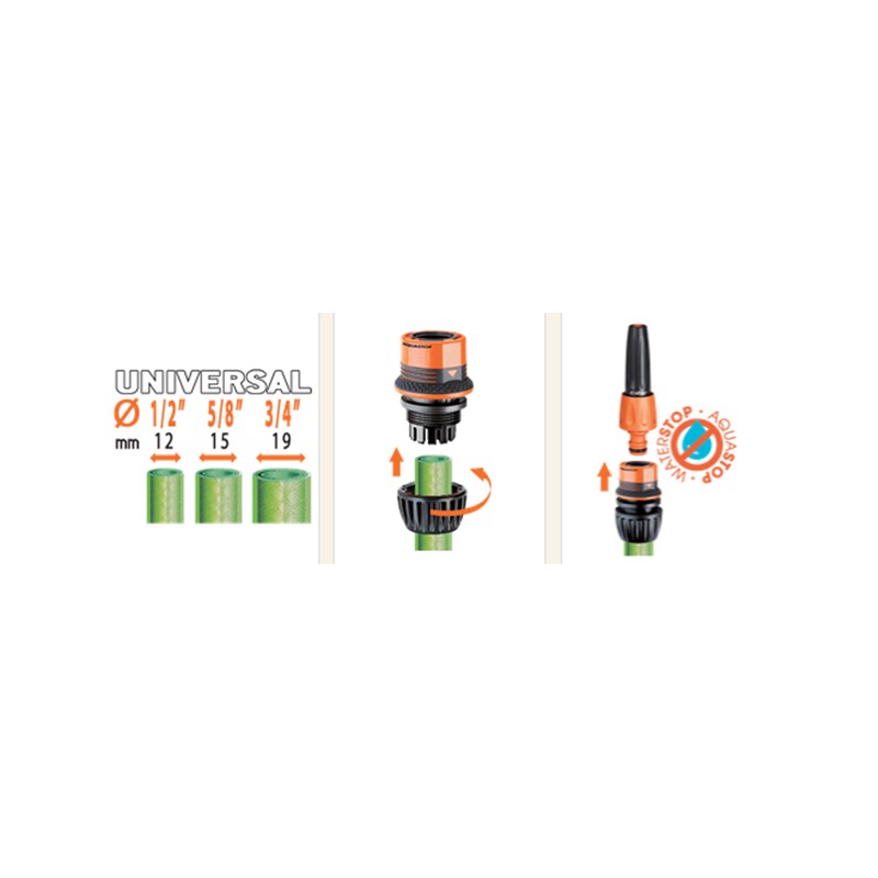 Với thiết kế nhỏ gọn, chuyên nghiệp, khớp nối nhanh Aquastop dùng để nối từ vòi tới các loại ống đường kính 1/2″- 5/8″ - 3/4". Cách sử dụng đơn giản dễ dàng, không tốn thời gian, không gây đau tay giúp bạn cảm thấy công việc tưới cây thật đơn giản và thú vị.