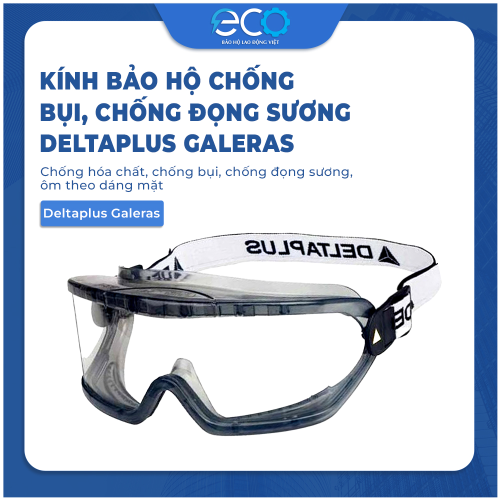 Kính bảo hộ chống hóa chất Deltaplus Galeras mắt kính chống bụi, chống đọng sương, ôm theo dáng mặt