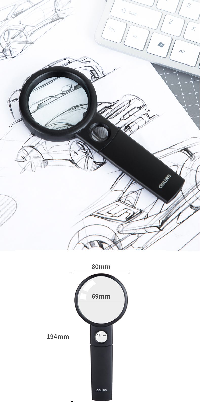 Kính lúp Deli 9099 đường kinh 70mm, độ phóng đại lên đến 11x | Văn Phòng Phẩm | Mèo Lười