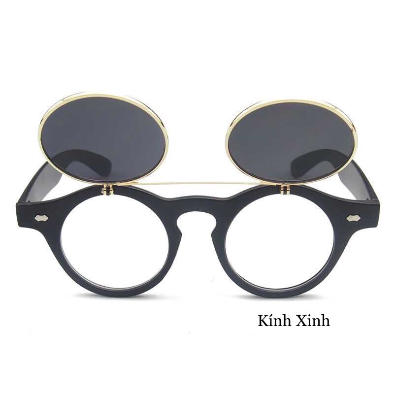 ✨Kính Râm 2 Lớp Mở Nắp Mắt Tròn Gọng Nhựa Chống Nắng Uv Cao Cấp
