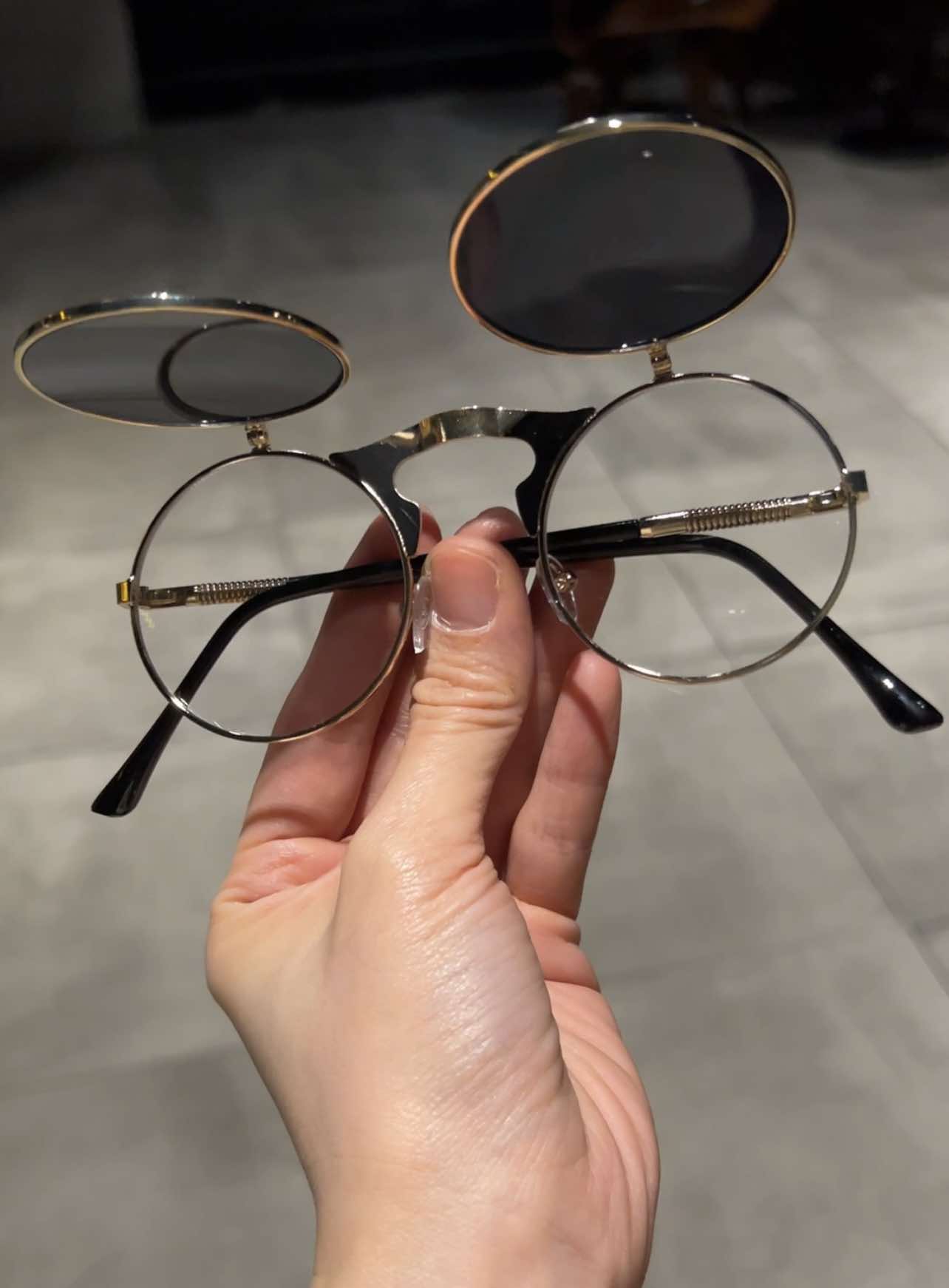 Mua tại Tiktok- Kính râm Mắt tròn Clip on 2 lớp mở nắp gọng lò xo