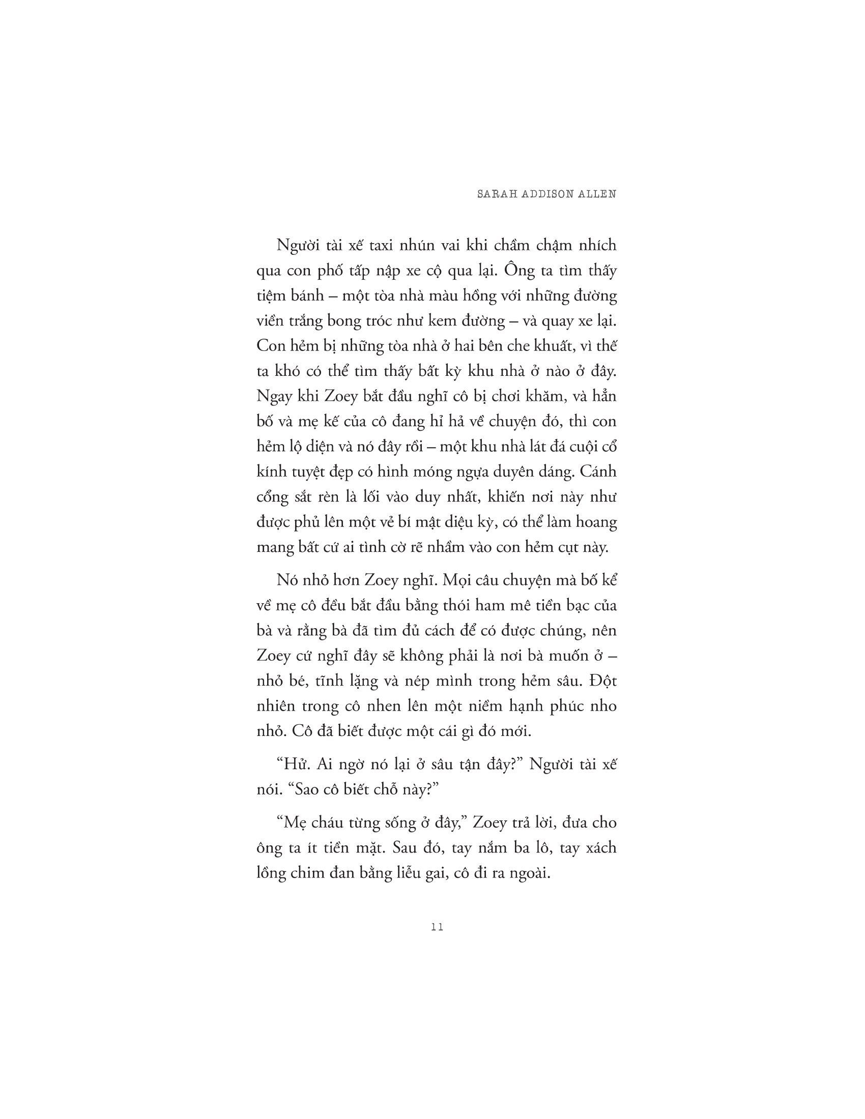 Sarah Addison Allen tốt nghiệp chuyên ngành Văn học Anh của Đại học North Carolina. Sau khi tốt nghiệp, cô thành công ra mắt cuốn sách đầu tay Garden Spells và đạt được tiếng vang lớn. Năm 2011, cô phải tạm dừng việc viết lách vì bị chẩn đoán mắc ung thư vú giai đoạn cuối ở tuổi 39. Hiện bệnh tình của cô đã thuyên giảm. Sách của cô đã được dịch sang 30 thứ tiếng và bán được gần 2 triệu bản.