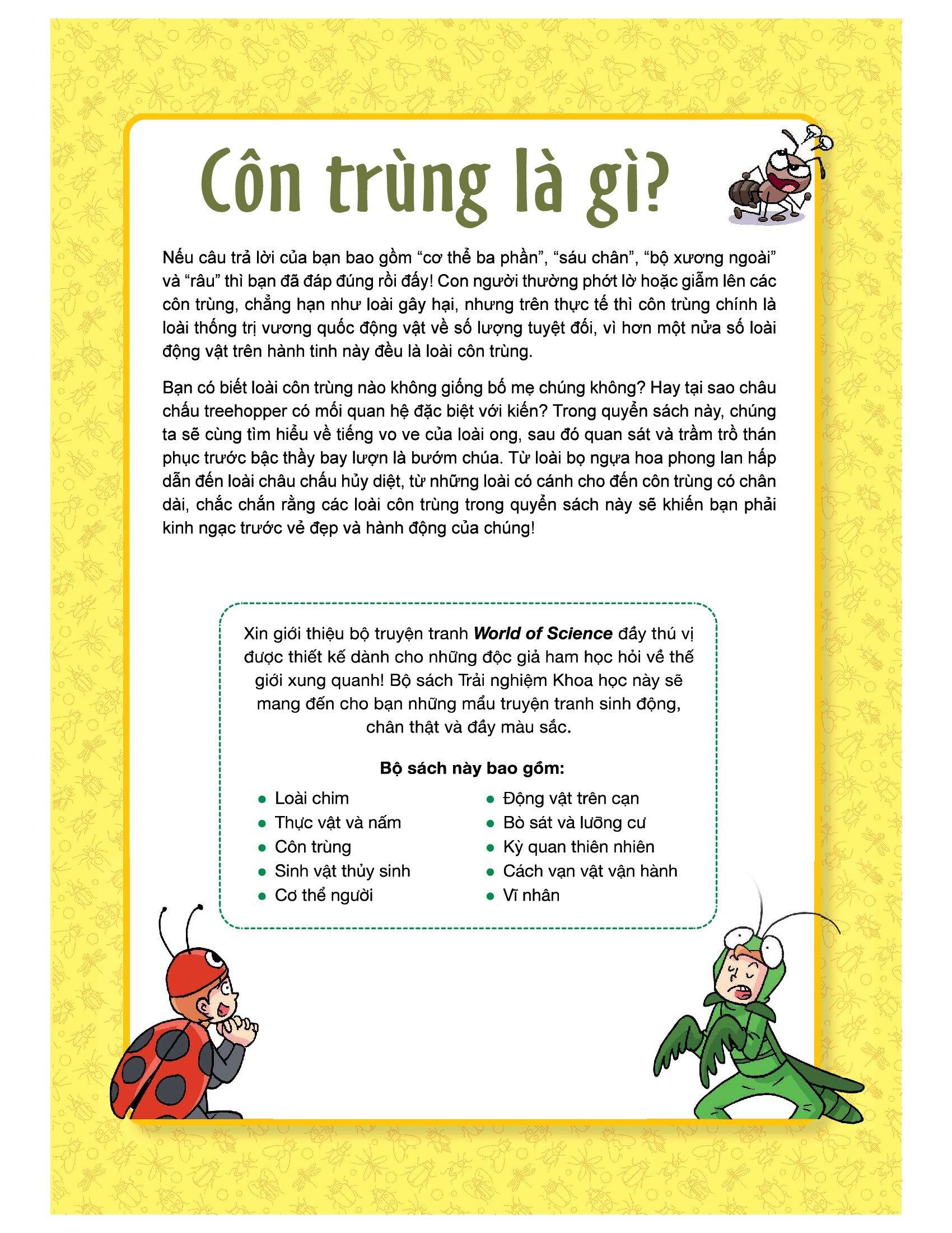 “World of Science” là bộ truyện tranh được biên soạn bởi WS Education, đơn vị xuất bản hàng đầu cho trẻ em tại Singapore và là công ty thắng giải “Best Education Title” tại “Singapore Book Awards” (“Tác phẩm Giáo dục Xuất sắc nhất" thuộc "Giải thưởng sách quốc gia Singapore") trong 3 năm liên tiếp. Bộ truyện gồm 10 tập, dành cho trẻ từ 6 tuổi trở lên, mỗi tập bao hàm một chủ đề thú vị: Loài chim; Thực vật và nấm; Côn trùng; Sinh vật thuỷ sinh; Cơ thể người; Động vật trên cạn; Bò sát và lưỡng cư; Kỳ quan thiên nhiên; Cách vạn vật vận hành.