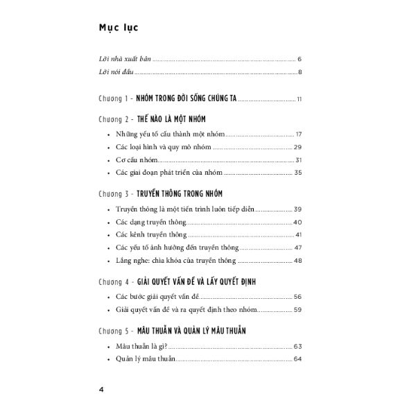 Đó là các kỹ năng giải quyết vấn đề, truyền thông-giao tiếp và làm việc theo tinh thần đồng đội (teamwork). Mục đích của sách là góp phần nâng cao kiến thức và kỹ năng của các bạn trẻ về nhóm để tham gia hữu hiệu vào các hoạt động xã hội hiện đại từ lao động sản xuất, tới giáo dục, vui chơi, giải trí, trong các tổ lao động, câu lặc bộ đội nhóm đến các nhóm giao dục đồng đẳng.