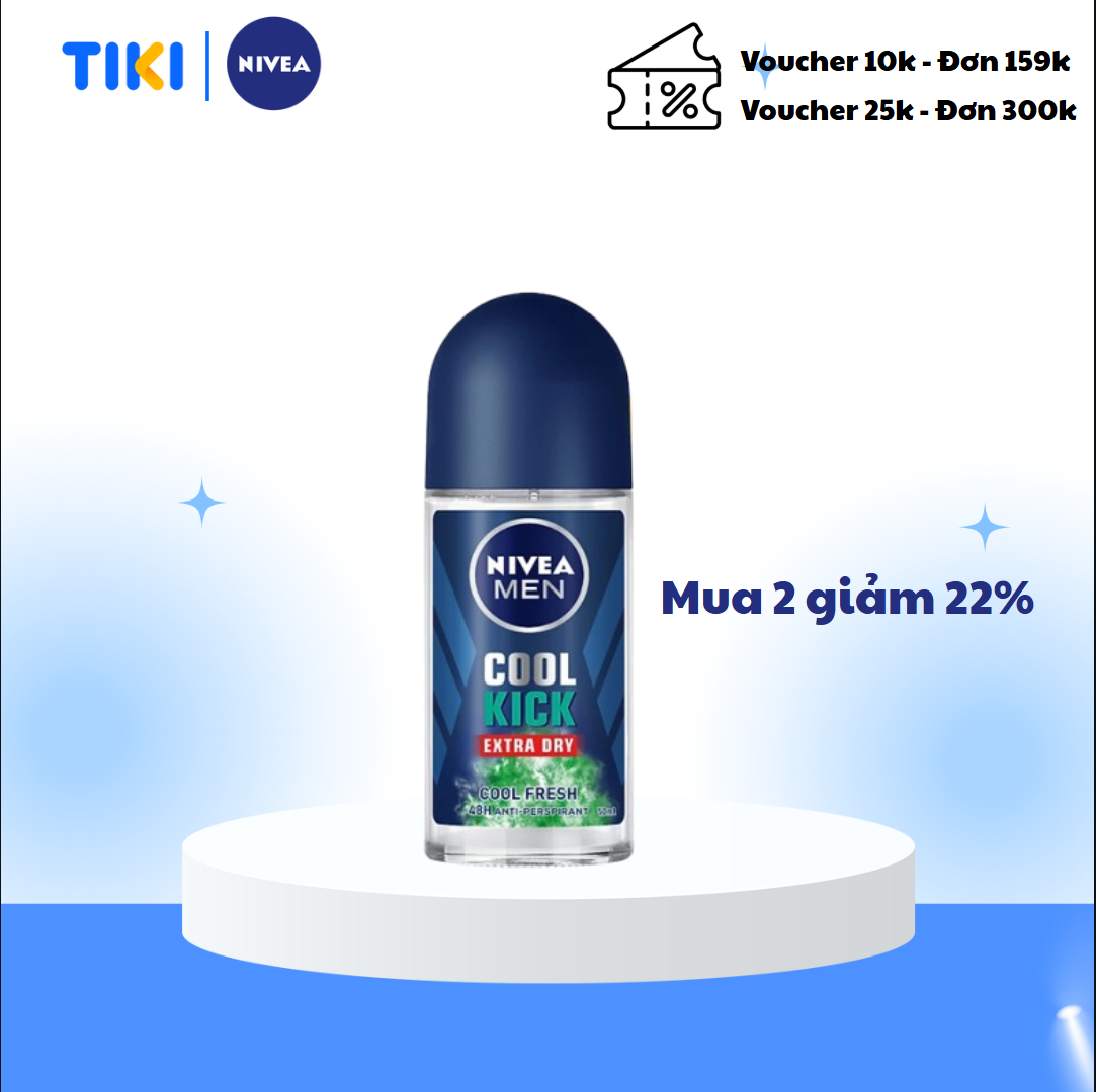 ✨Lăn ngăn mùi NIVEA MEN Cool Kick Mát Lạnh - Siêu Khô Thoáng (50ml) - 83188