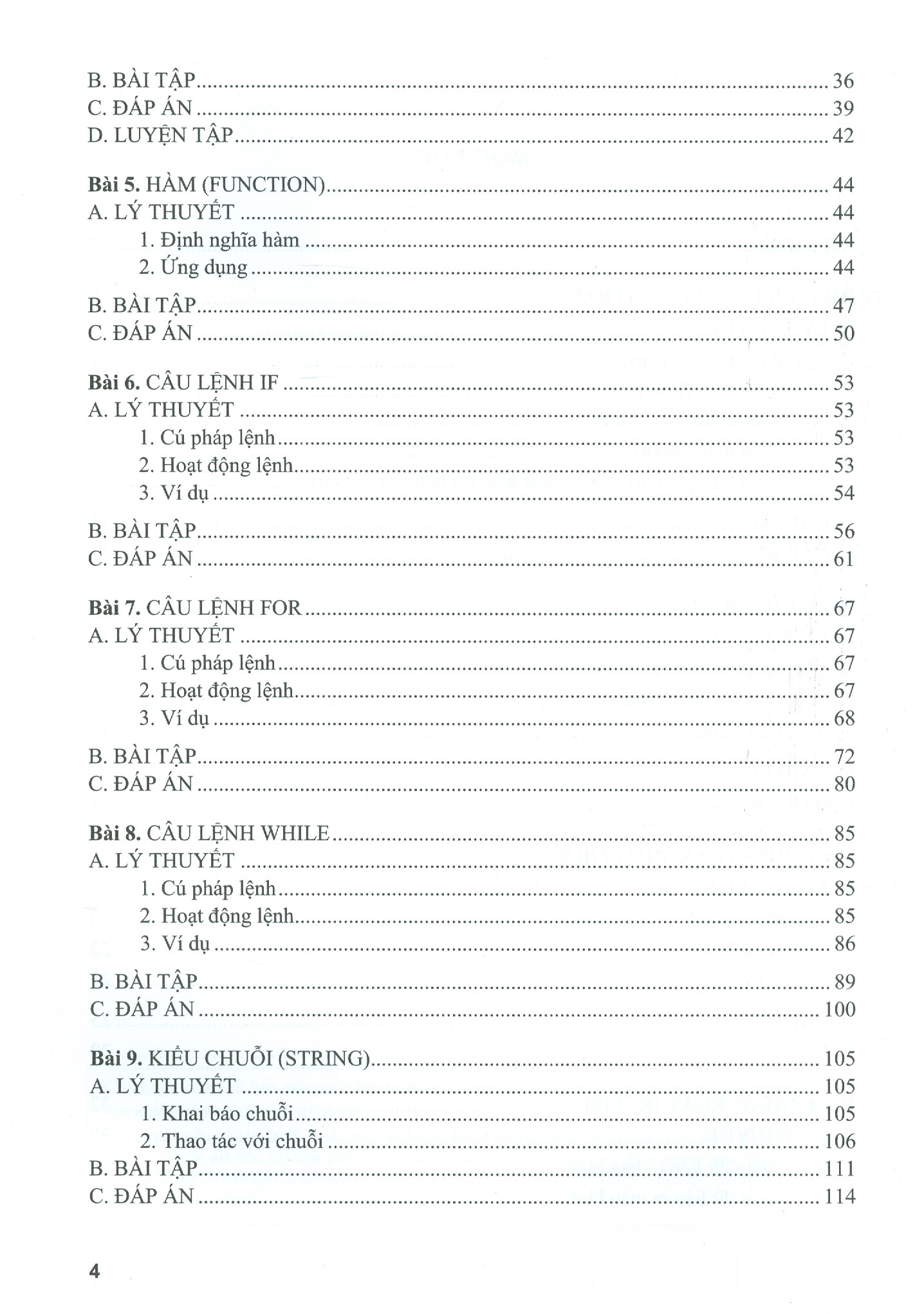 Gồm 15 bài học và 2 dự án thực hành. + Bài 1: Cài đặt môi trường phát triển + Bài 2: Ngôn ngữ lập trình Python + Bài 3: Biến và kiểu dự liệu