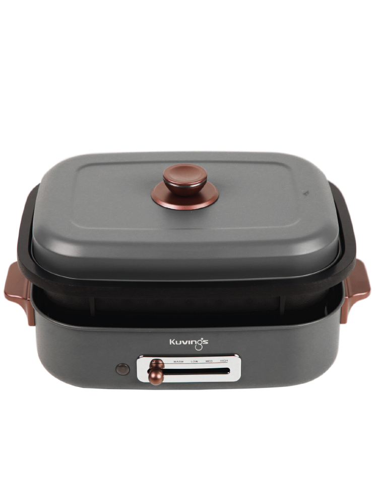 LẨU ĐIỆN PHỦ GỐM CERAMIC ĐA NĂNG 2 TRONG 1 HIỆU KMG-200B Nhằm đáp ứng sở thích ăn các món nướng và lẩu tại nhà mà không chứa nhiều dầu mỡ và an toàn cho người sử dụng. đã cho ra đời những mẫu Lẩu điện phủ gốm Ceramic đa năng hiệu cao cấp tại thị trường Việt Nam. Lẩu điện phủ gốm Ceramic đa năng Kuvings 2 trong 1 KMG-200B được sản xuất từ linh kiện cao cấp có độ bền cao không chứa chất độc hại. Thiết kế nhỏ gọn, sang trọng, hiện đại và an toàn theo phong cách “Newtro”.