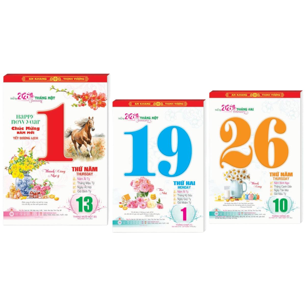- Quyển Bloc lịch 2026 dùng gắn vào các loại bìa lịch treo tường, thay thế Bloc năm cũ. * QUY CÁCH BLOC LỊCH: - Chất lượng in công nghệ hiện đại, sắc nét, in