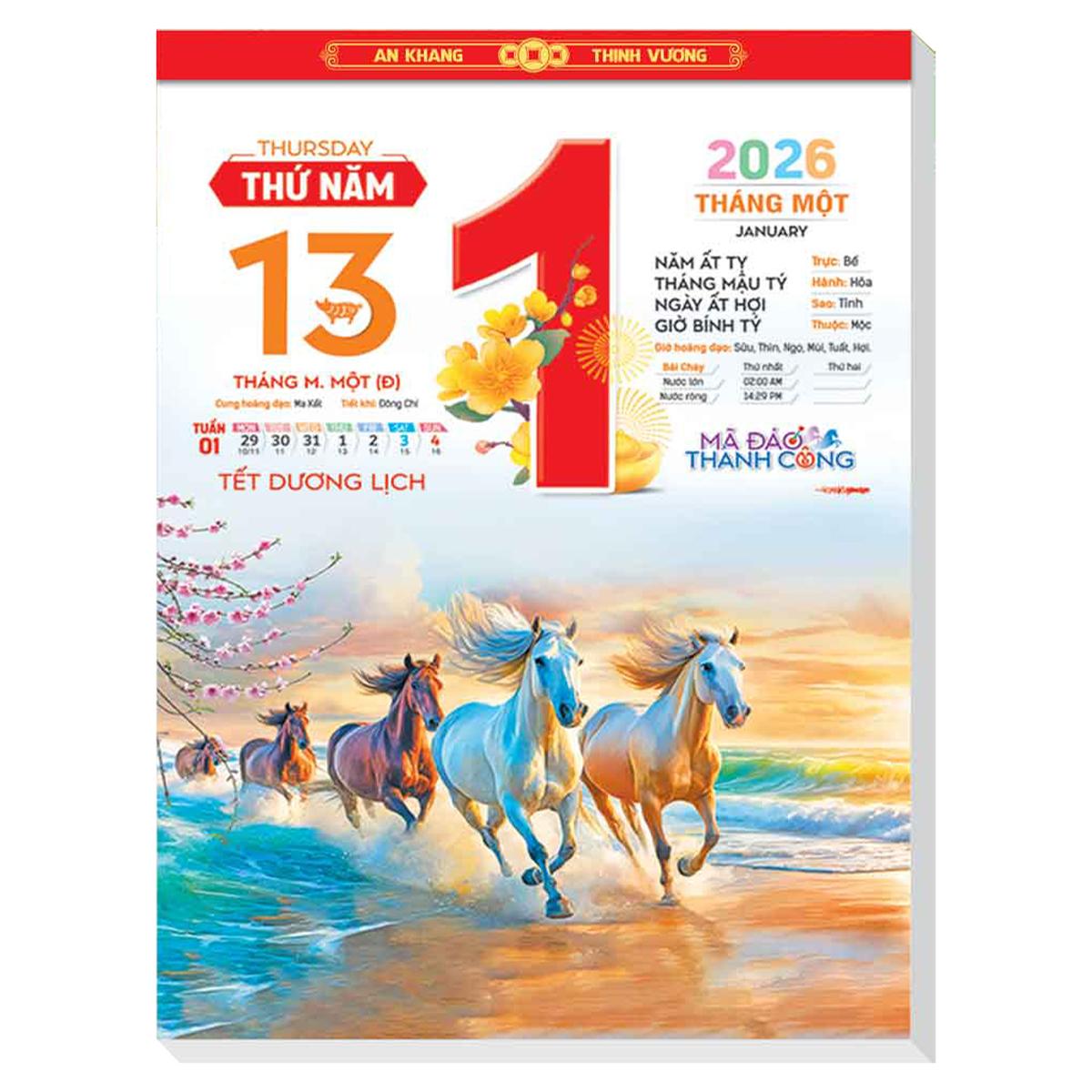 Lịch 2026 Bloc Cực Đại Rời – Mã Đáo Thành Công | Lịch Tết Treo Tường Cao Cấp Vanlangbooks | FREESHIP (Mã: VL08) Lịch 2026 Bloc Cực Đại Rời – Chủ đề Mã Đáo Thành