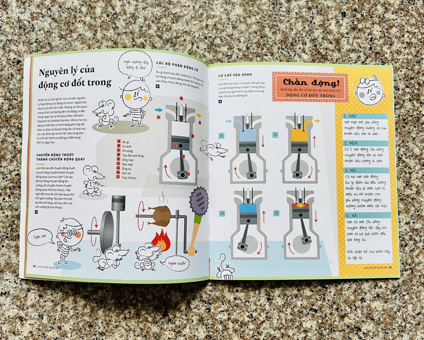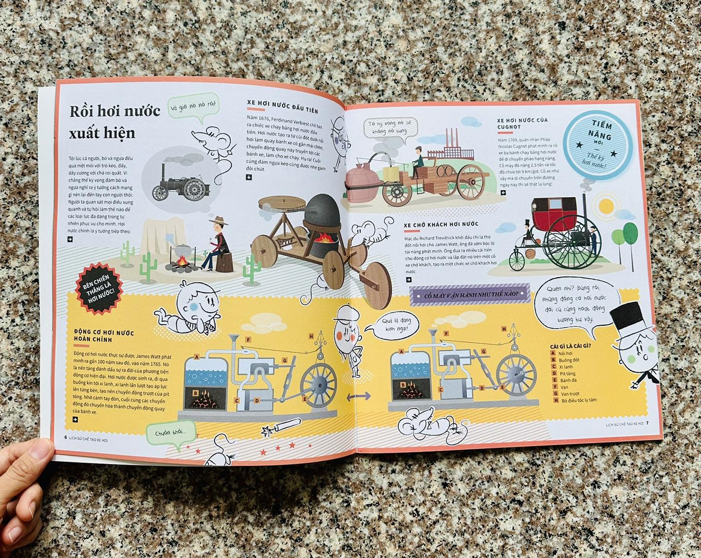 LỊCH SỬ CHẾ TẠO XE HƠI Hơn 5.000 năm trước loài người phát minh ra bàn xoay gốm; phát minh tưởng như không mấy liên quan này đánh dấu một điều khiến cho trái tim loài người đập nhanh hơn đôi chút: chiếc xe kéo đầu tiên, động cơ hơi nước đánh dấu sự ra đời của xe hơi, chiếc xe với động cơ đốt trong, rồi đến mẫu xe hiện đại của điệp viên James Bond và Người Dơi. Con người chưa bao giờ ngừng nghỉ trên chặng đường chinh phục tốc độ!Tất cả đang chờ bạn với ngập tràn hình minh họa độc đáo và đậm chất cổ điển. Tựa sách dành cho các bạn nhỏ từ 8-15 tuổi đam mê tìm hiểu cấu tạo và cách thức hoạt động của các loại máy móc, phương tiện .