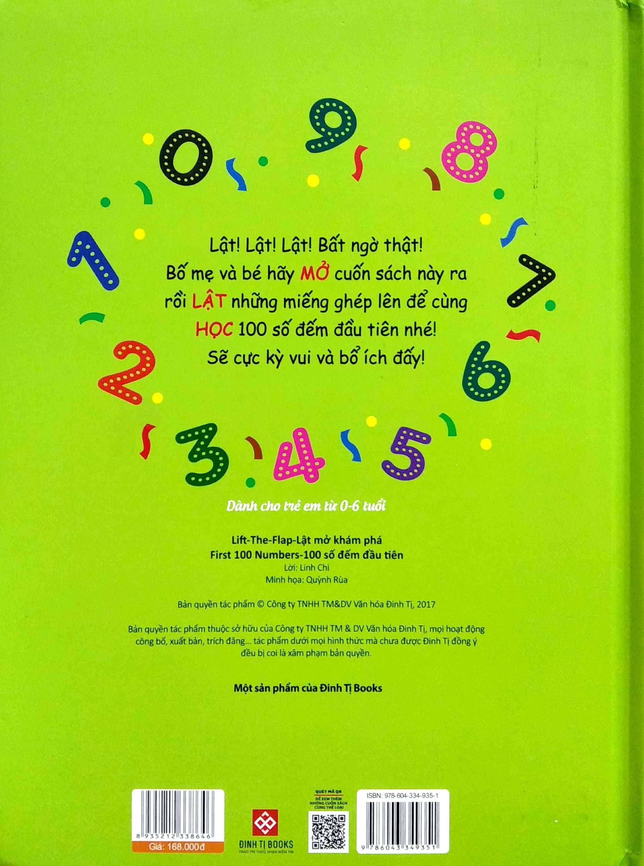 Lift-The-Flap - Lật Mở Khám Phá: First 100 Numbers - 100 Số Đếm Đầu Tiênlà cuốn sách thứ 2 trong bộ sách song ngữ Lift-the-Flap – Lật Mở Khám Phá, hướng dẫn bé làm quen