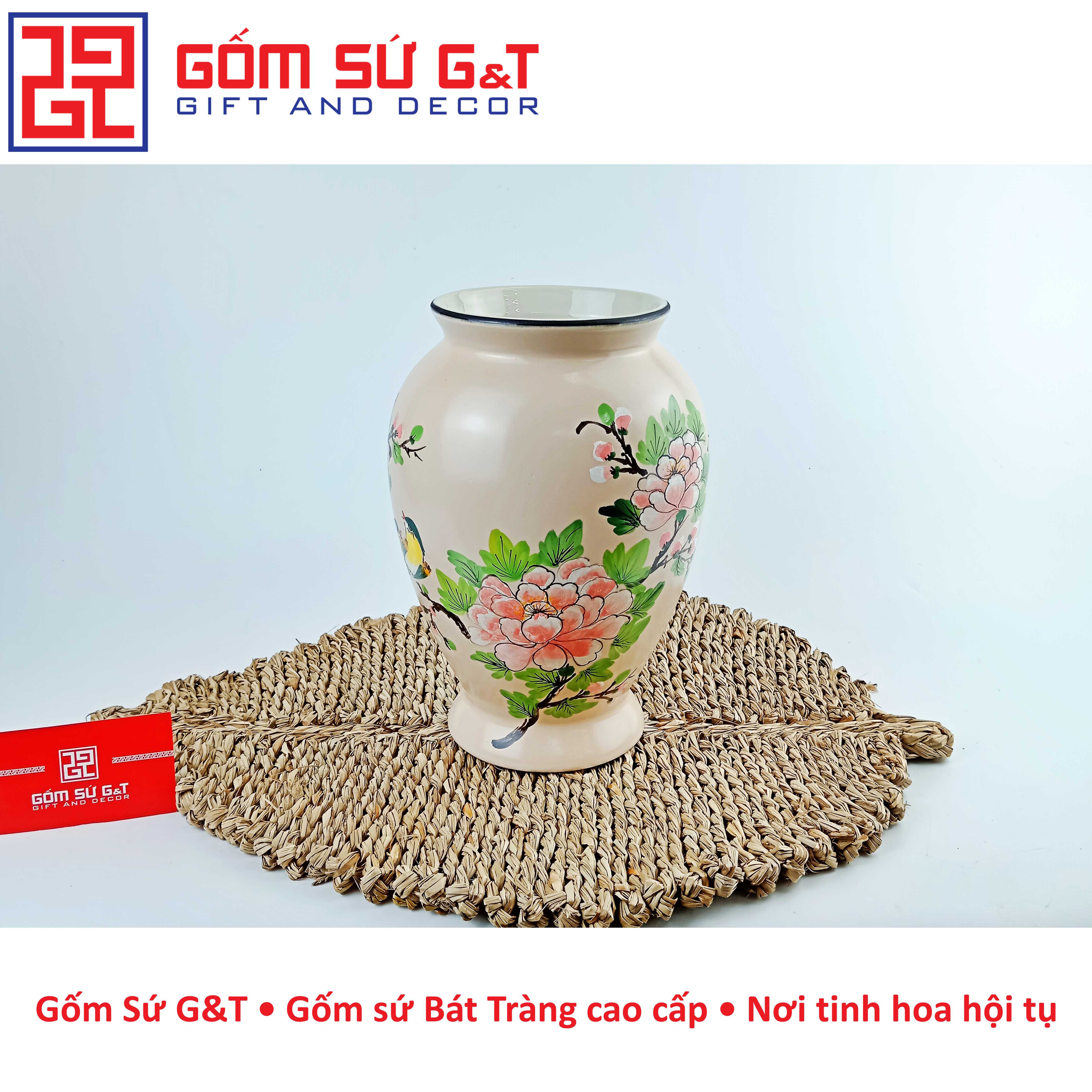 Bình hoa cao cấp Bát Tràng, hàng chuẩn loại 1, dáng chum họa tiết đắp nổi được thực hiện thủ công 100% bởi bàn tay lành nghề của các nghệ nhân làng nghề. Sản phẩm
