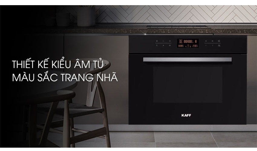 Lò nướng đối lưu Kaff KF-T90S nhập khẩu nguyên chiếc từ Malaysia được thiết kế âm tủ, chỉ để hở ra mặt trước, toàn bộ phần khoang lắp chìm vào tủ bếp. Thiết kế này không chỉ giúp căn bếp gọn gàng mà còn luôn giữ cho nhiệt độ lò ổn định trong khi hoạt động, không bị xô dịch hay tác động bên ngoài.