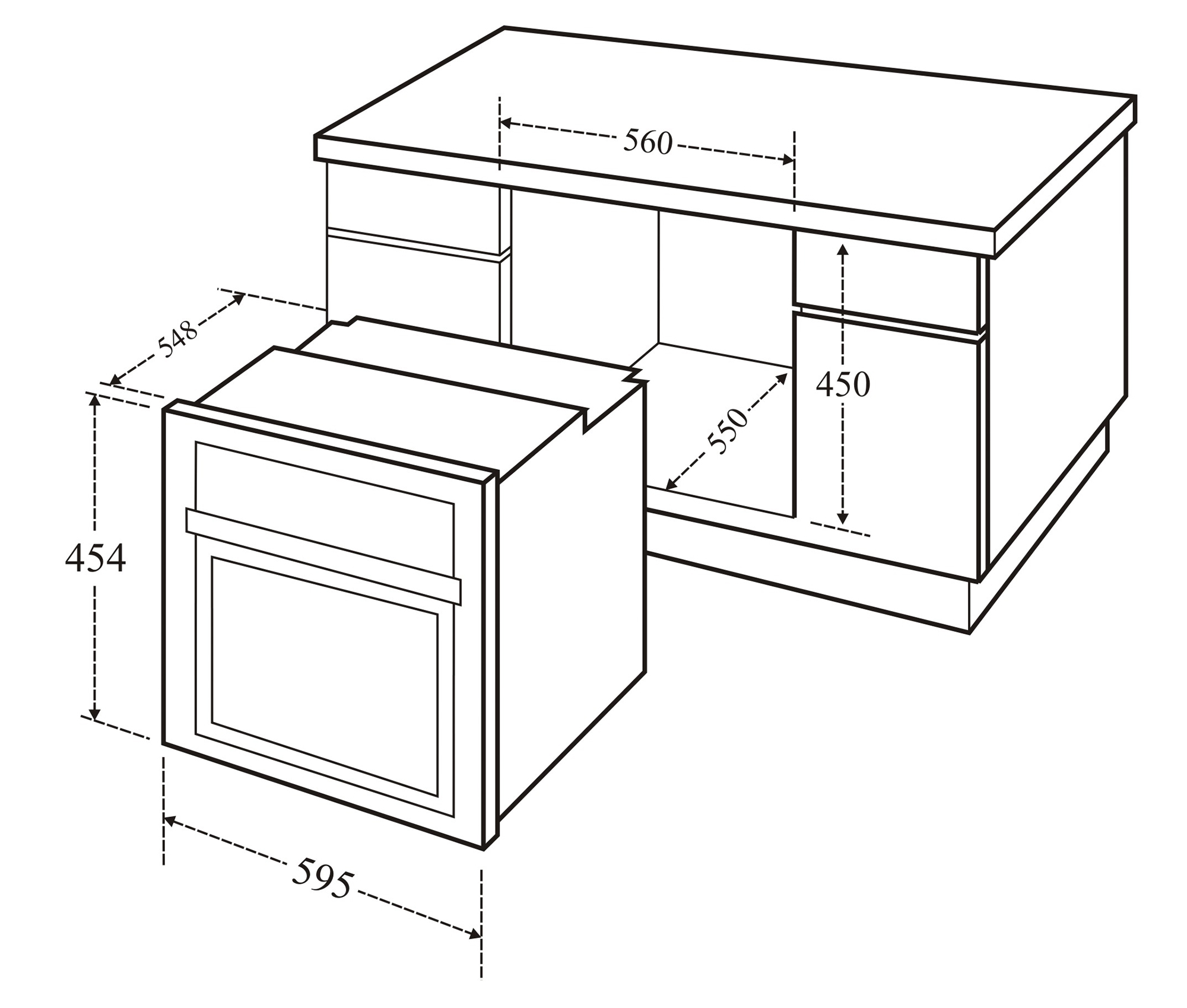 – Kích thước âm tủ: 450C x 560-568R x 550S mm