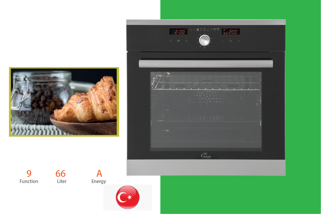 Lò nướng TOM 234 với 9 chức năng tiện dụng, sử dụng mức năng lượng A giúp tiết kiệm 20% điện năng. Sản xuất tại Châu Âu theo tiêu chuẩn của Tomate Electrodomésticos.