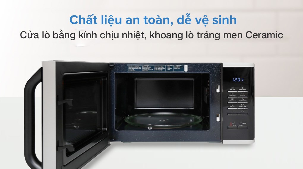 Khoang lò tráng men CERAMIC INSIDE chống trầy xước hiệu quả và không bị ngả màu theo thời gian. Bề mặt phẳng mượt giúp bạn dễ dàng lau chùi sạch sẽ, cho lò vi sóng luôn sạch đẹp và bền bỉ như mới.