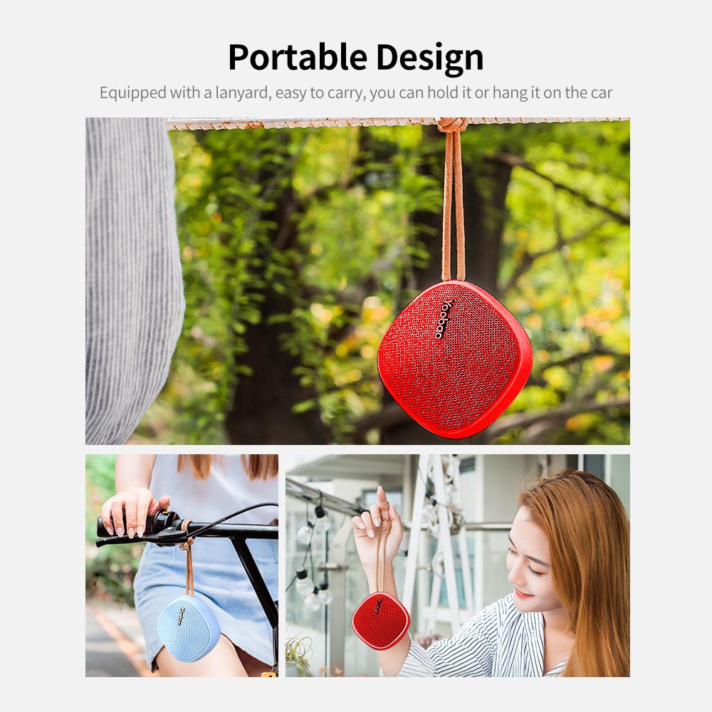 Features: Adopt Bluetooth 4.2 chip, lower power consumption and faster transmission, low latency, stronger anti-interference ability. Surround shock subwoofer, good sound quality. After pairing once, it will automatically connect after power on, more convenient to use. Equipped with a lanyard, easy to carry, you can hold it or hang it on the car. Built-in 2000mAh lithium battery, long endurance time, it can play for about 8 hours on a full charge. Specification: Brand: Yoobao Bluetooth version: 4.2 Color: Black/Blue/Red(optional) Frequency: 2.402GHz-2.480GHz Horn impedance: 4Ω Frequency response range: 250Hz-11KHz Output power: 3W Battery capacity: 2000mAh Music time: About 8-12 hours Item size: 9.3 9.3 4.6cm /3.66 3.66 1.81in Item weight: Approx. 195g /6.88oz Package size: 13 12 5.5cm /5.12 4.72 2.17in Package weight: 260g /9.17oz Packing list: 1 Speaker 1 Charging cable 1 * User manual
